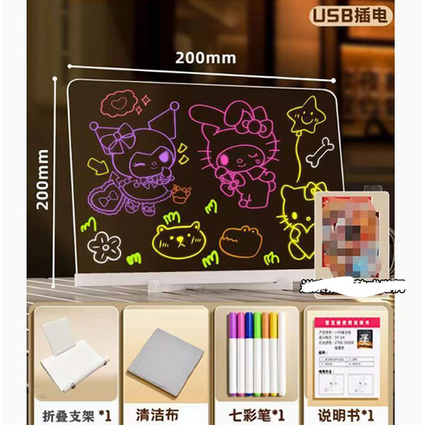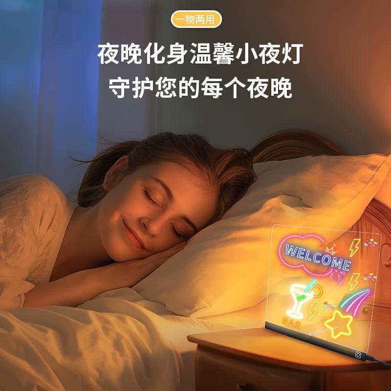 [빛나는 드로잉 보드] 어린이 빛나는 손 드로잉 보드 지울 수있는 DIY 투명 아크릴 학습 보드 밤