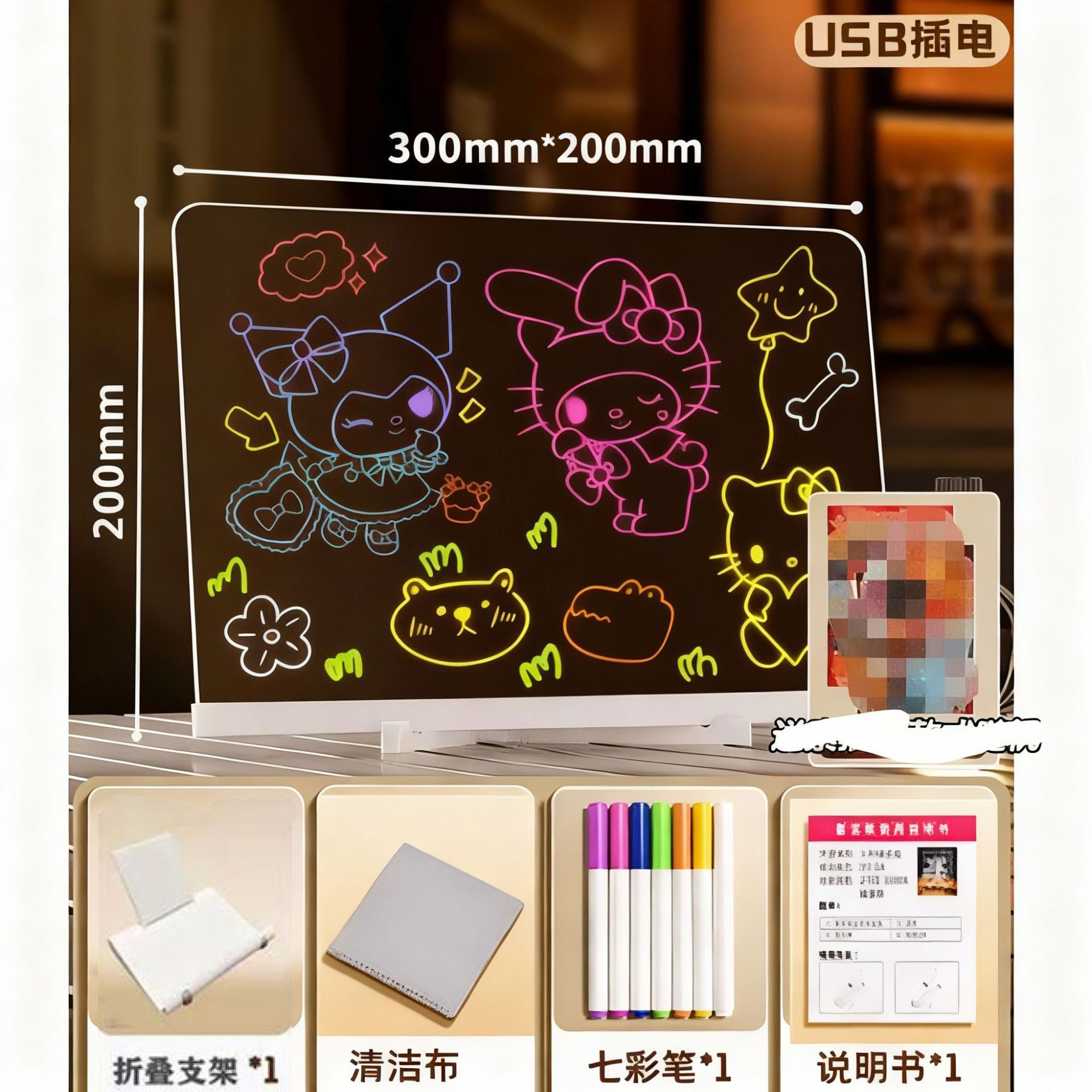 [빛나는 드로잉 보드] 어린이 빛나는 손 드로잉 보드 지울 수있는 DIY 투명 아크릴 학습 보드 밤스토어 가기