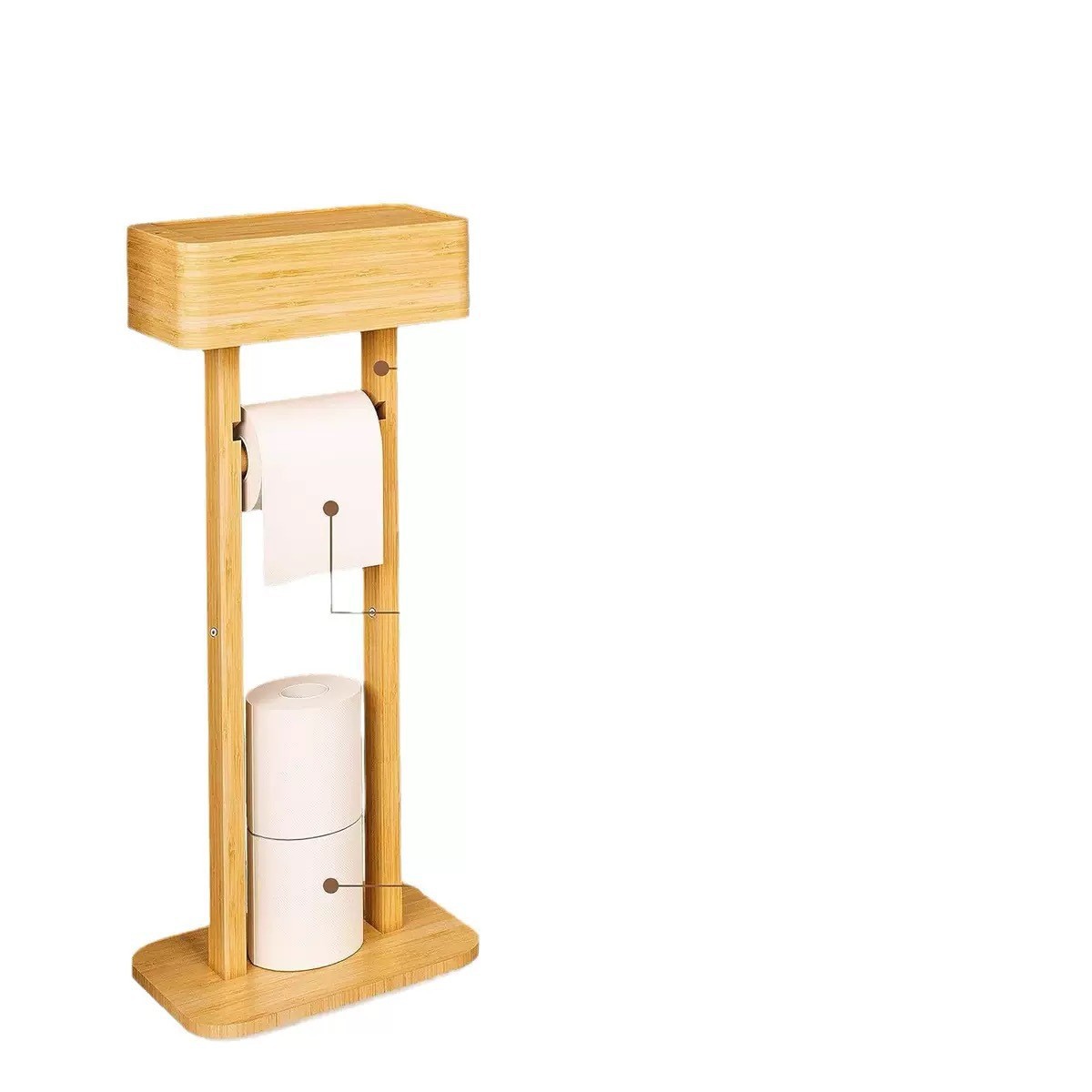 대나무 화장지 홀더 욕실 바닥 스탠딩 잔해물 보관함 나무 티슈 홀더 회전식 욕실 롤 홀더