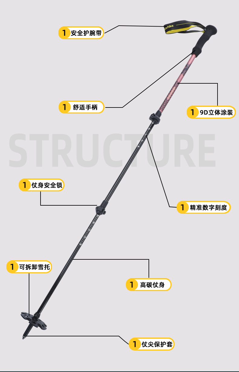 도매 대외 무역 전체 탄소 트레킹 스틱 텔레스코픽 야외 텔레스코픽 손 스틱 야외 하이킹 등산 산 캠핑