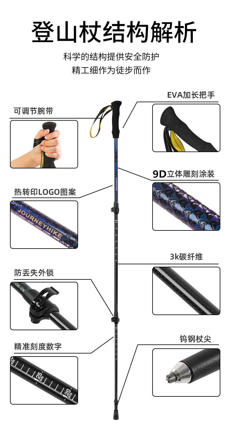 도매 대외 무역 전체 탄소 트레킹 스틱 텔레스코픽 야외 텔레스코픽 손 스틱 야외 하이킹 등산 산 캠핑스토어 가기