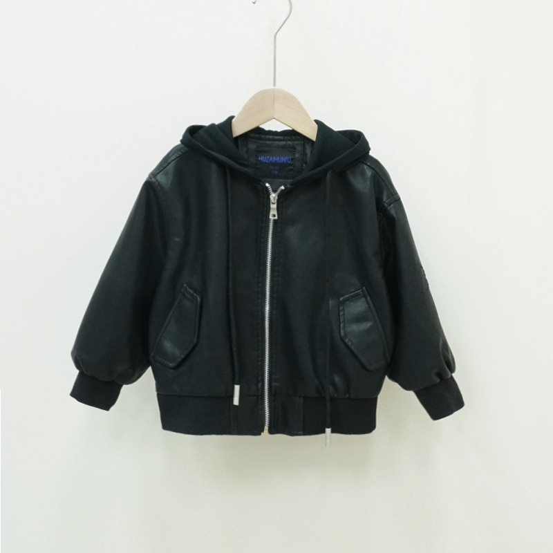 2025 소년 가죽 자켓 봄, 가을 한국 스타일 어린이 가짜 투피스 후드 자켓 트렌디하고 멋진 소년 잘 생긴 일본 가죽 자켓스토어 가기