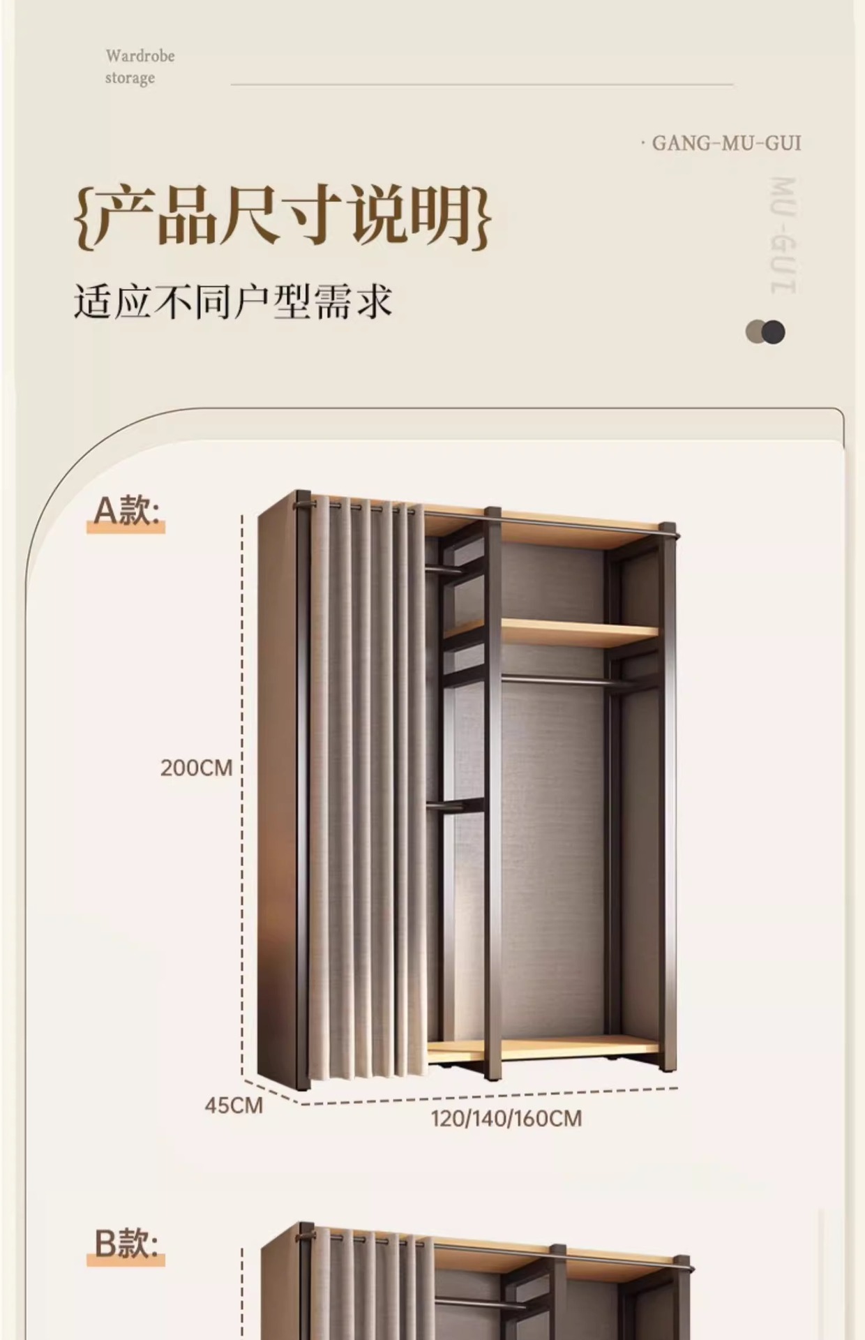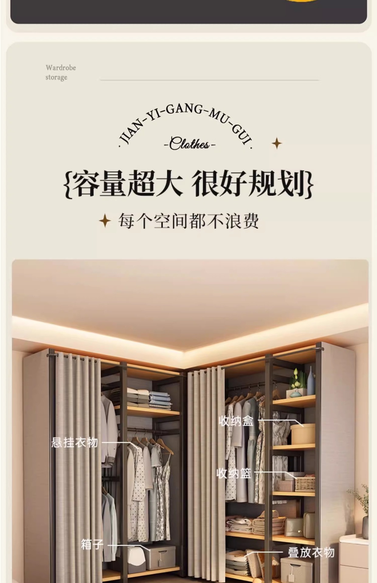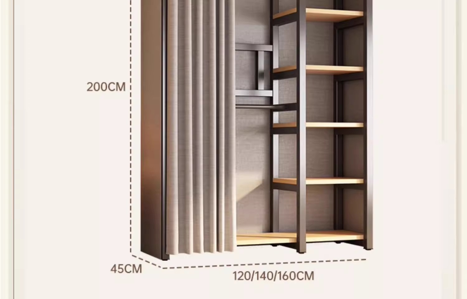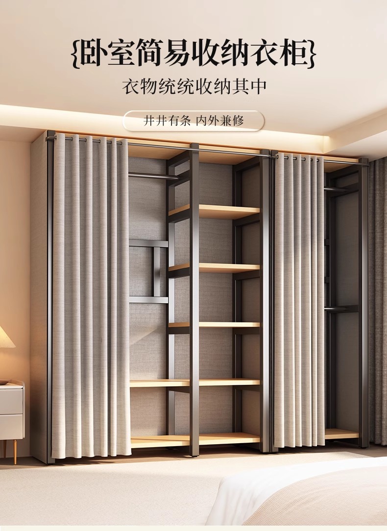 개방형 옷장 홈 침실 금속 프레임 옷장 철제 옷장 2025 임대용 새로운 핫 스타일