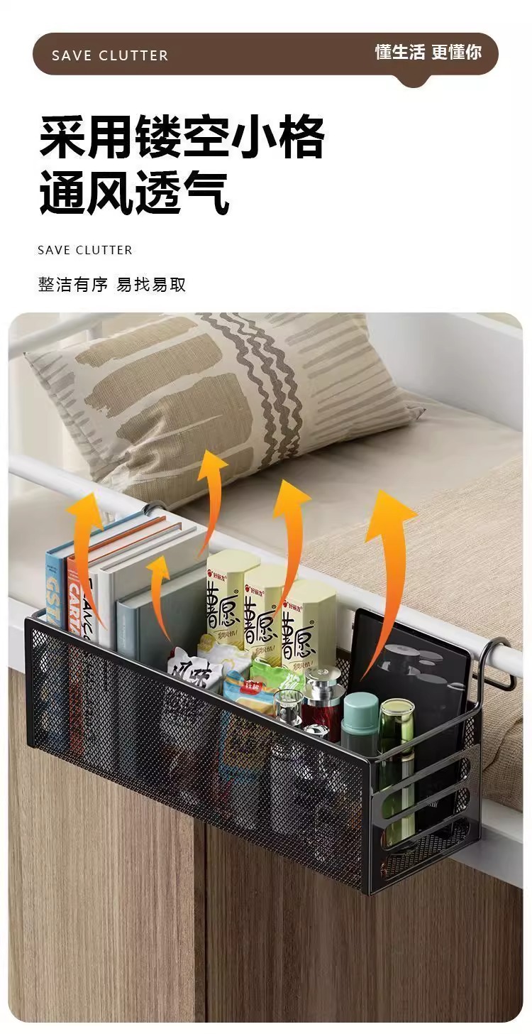기숙사 침대 옆 걸이 바구니 수납 선반, 상단 침대 걸이형 침대 옆 수납 선반, 특수 기숙사 펀치 없는 수납 선반