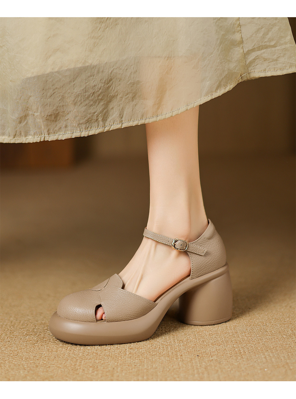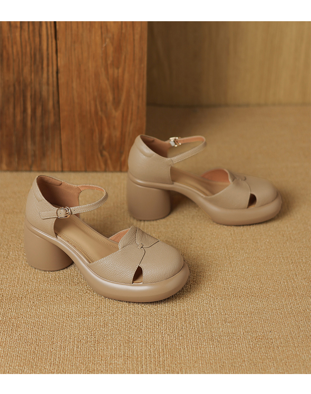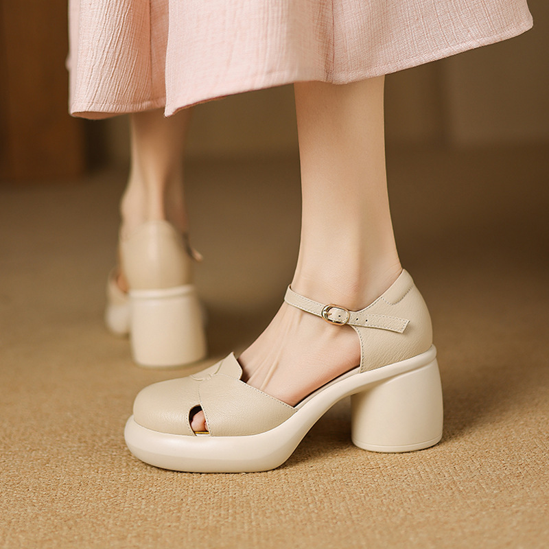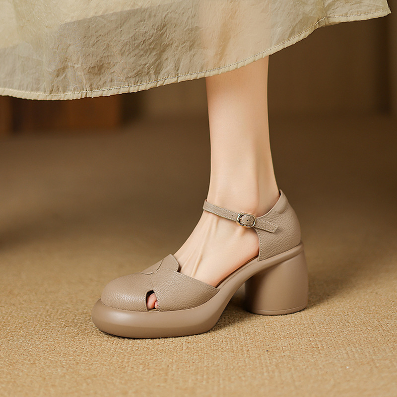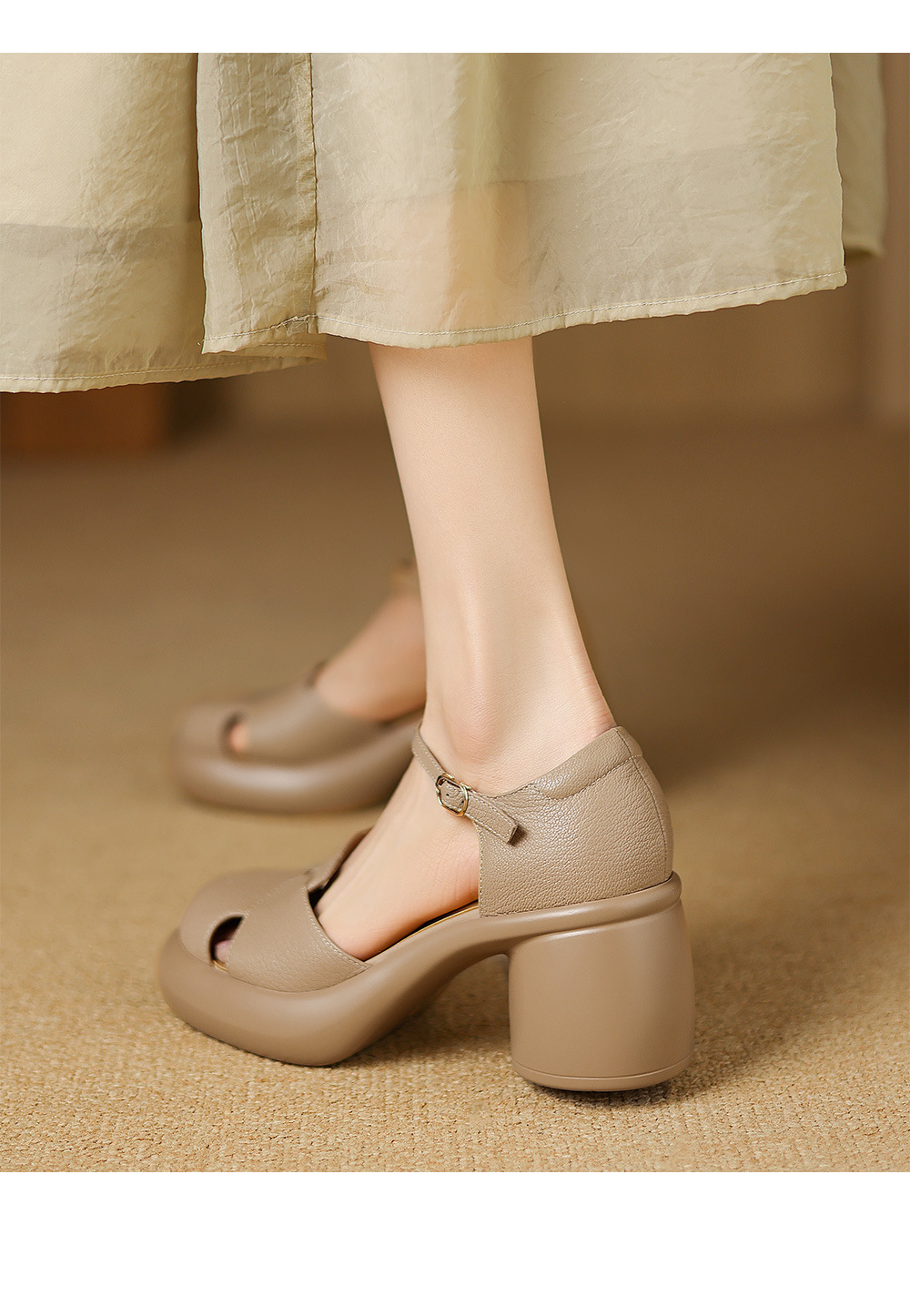 여성을 위한 고급 여름 로마 신발, 두꺼운 밑창, 다용도 복고풍 2025 새로운 스타일의 버클 하이힐 샌들