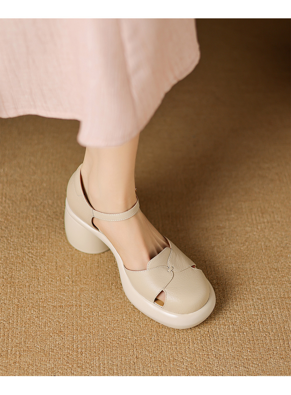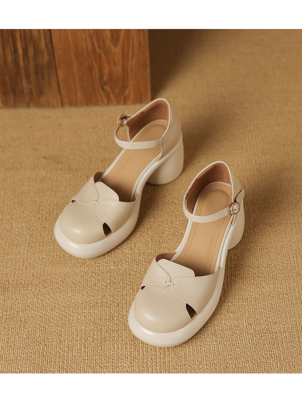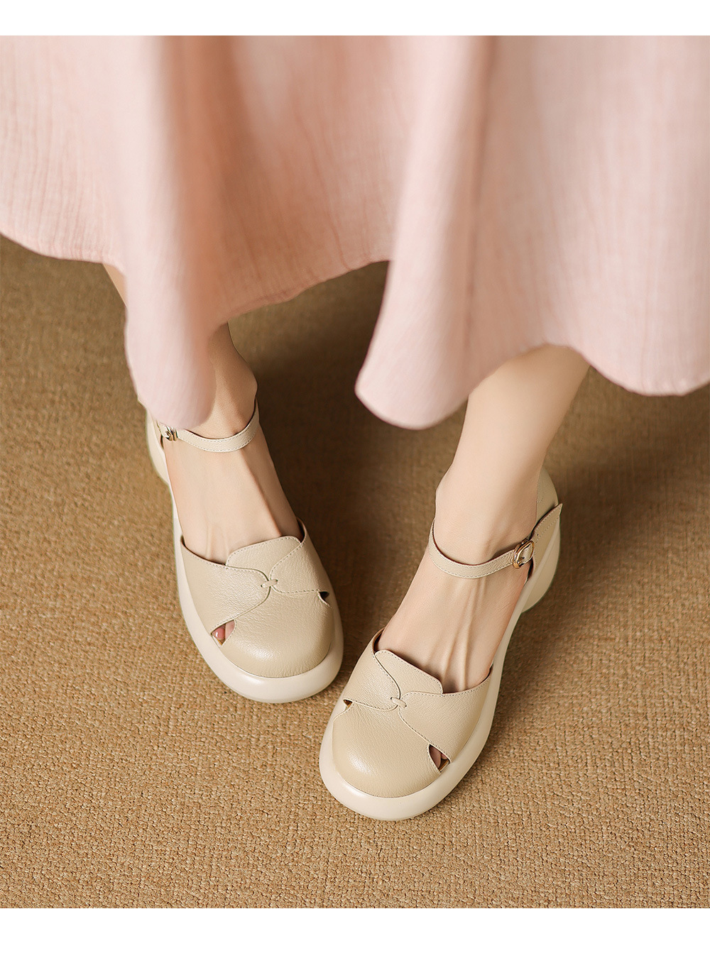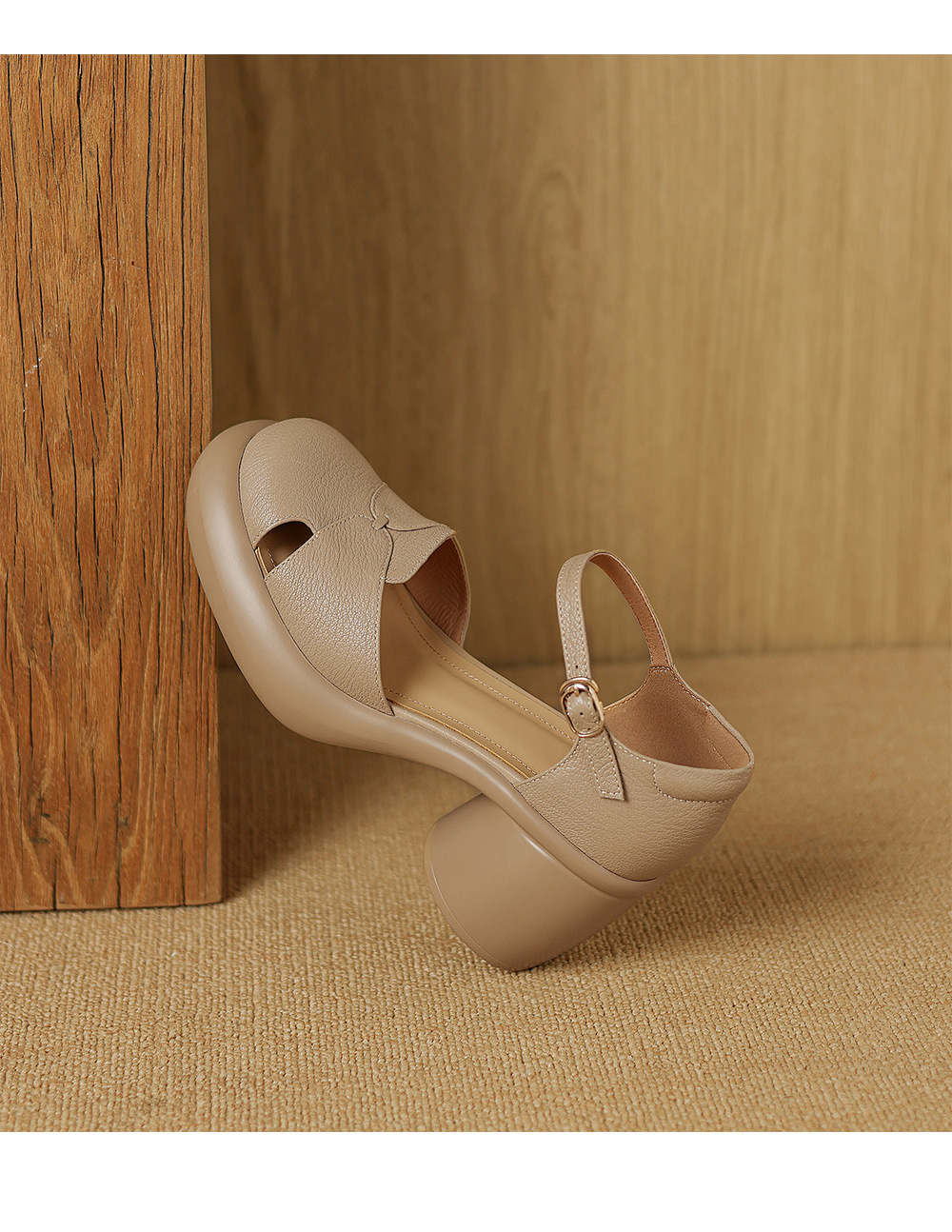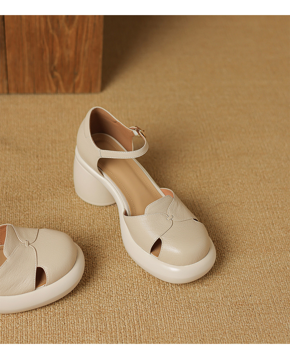 여성을 위한 고급 여름 로마 신발, 두꺼운 밑창, 다용도 복고풍 2025 새로운 스타일의 버클 하이힐 샌들