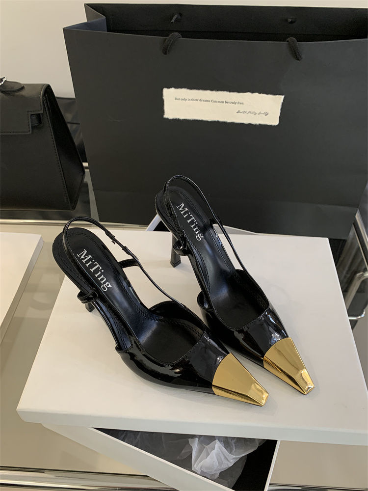 여성용 하이힐, 골드 아이언 토, 여성용 양수린 페이턴트 가죽 블랙 여성화, 스틸레토 힐, 섹시한 작은 사각 발가락 샌들스토어 가기