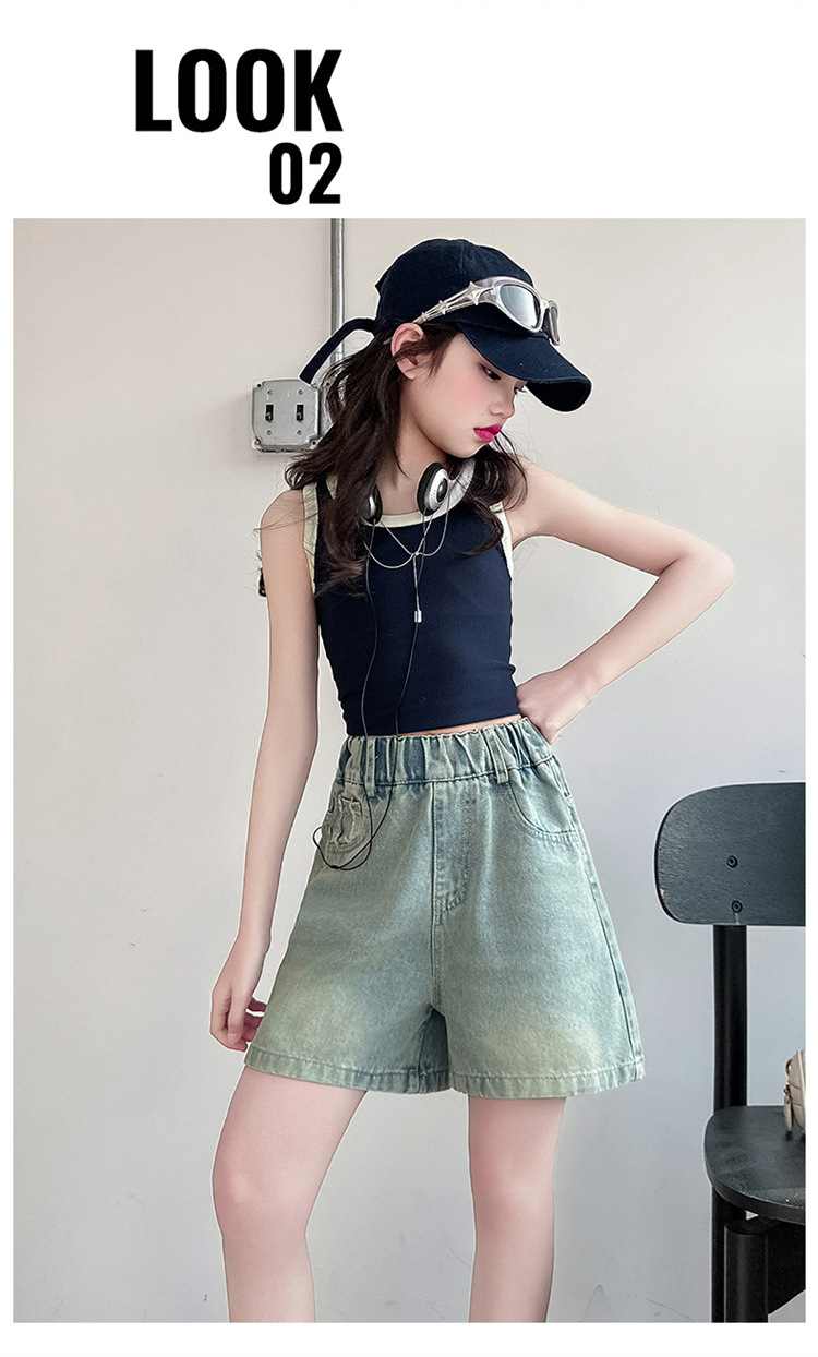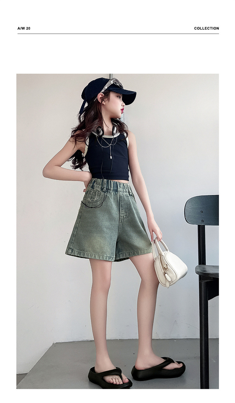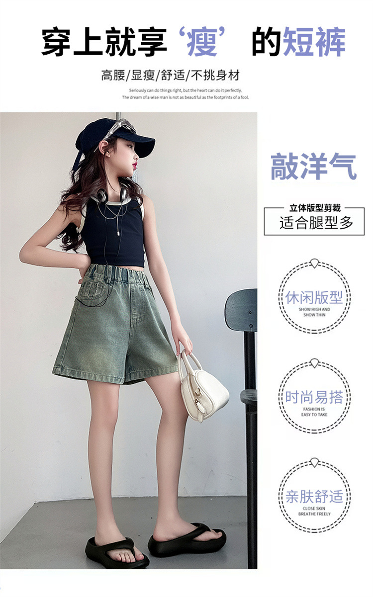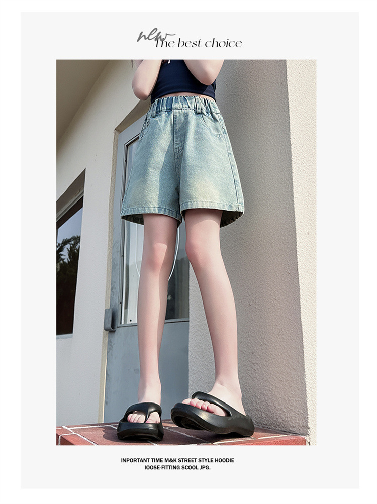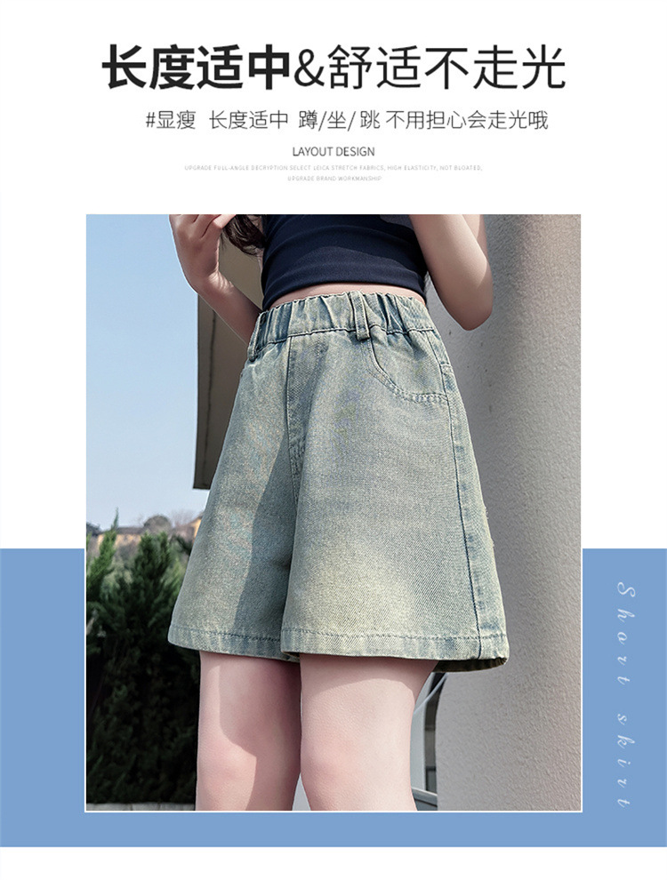 여아 여름 신상 청바지 2025 중대형 아동 여름 착용 얇은 맞춤형 패션 아우터 다용도 반바지 트렌디스토어 가기
