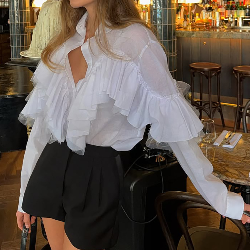 FD2200 패셔너블 스위트 탑 2025 여름 신작 러플 쉬폰 셔츠 화려한 디자인 긴팔 셔츠스토어 가기