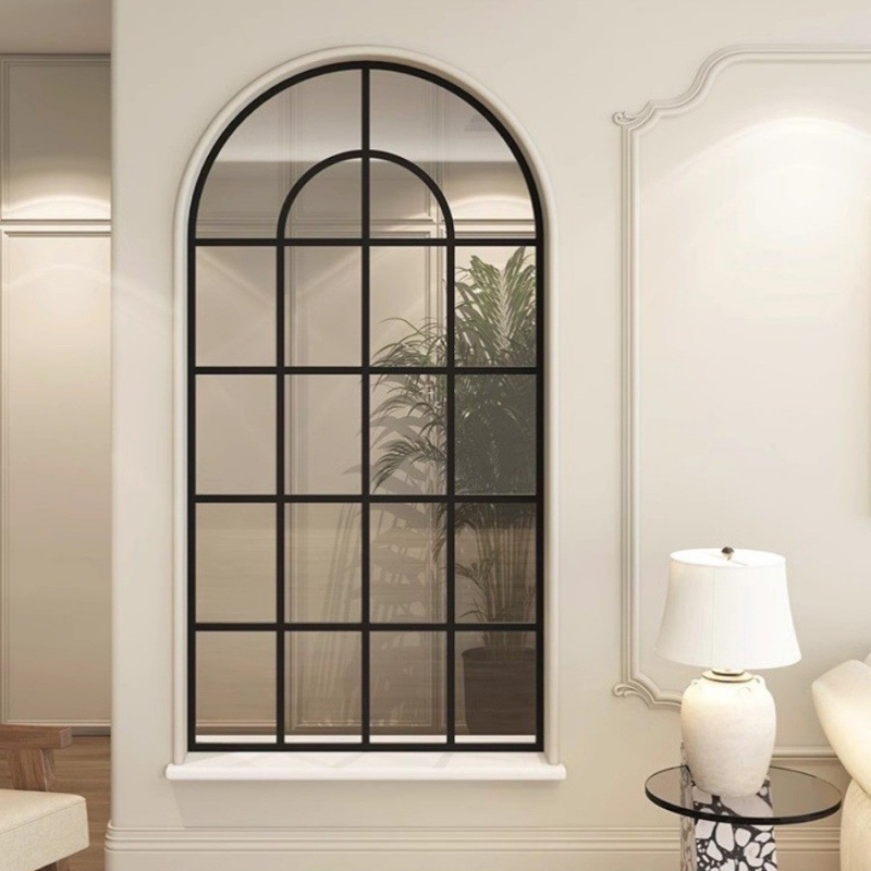 프렌치 크림 스타일 유리 칸막이 거실 입구 반원형 아치형 스크린 철제 창문 현관 거울