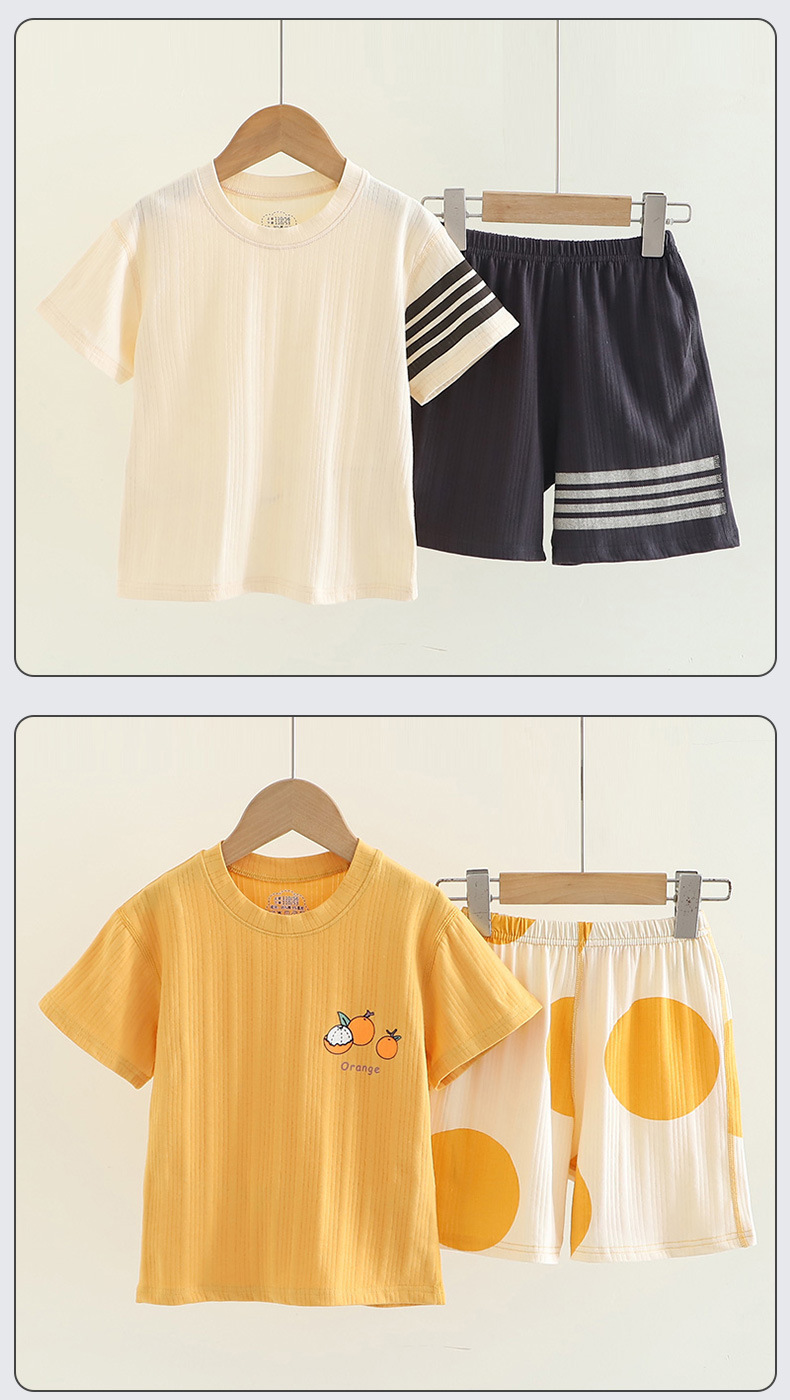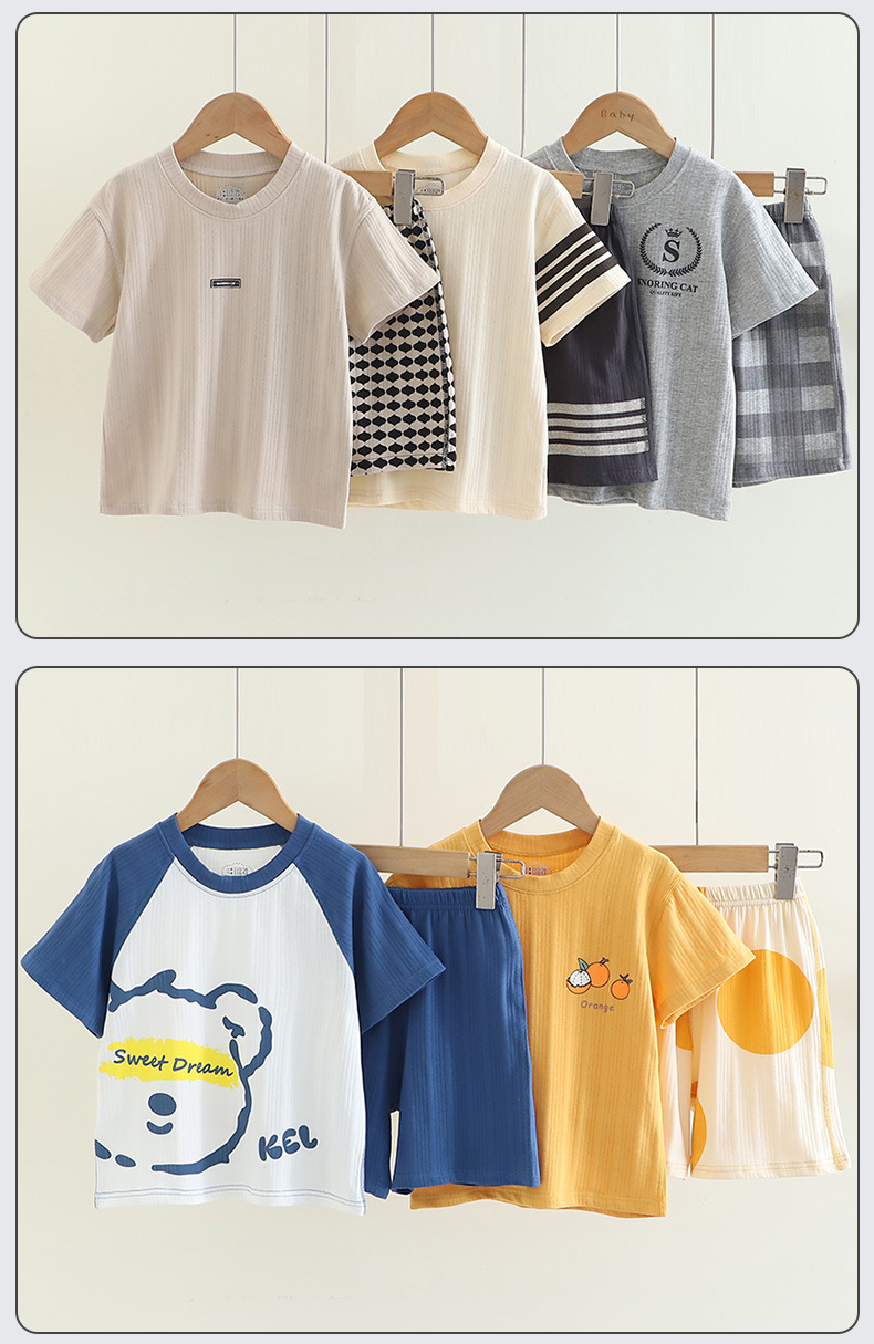 25 여름 부모-자식 의류, 가정복, 남아용 면 잠옷, 아동용 반팔 반바지 정장, 여아용 중대형 아동용 에어컨 의류스토어 가기