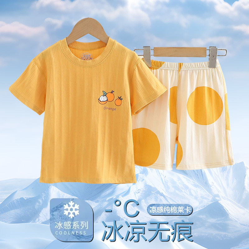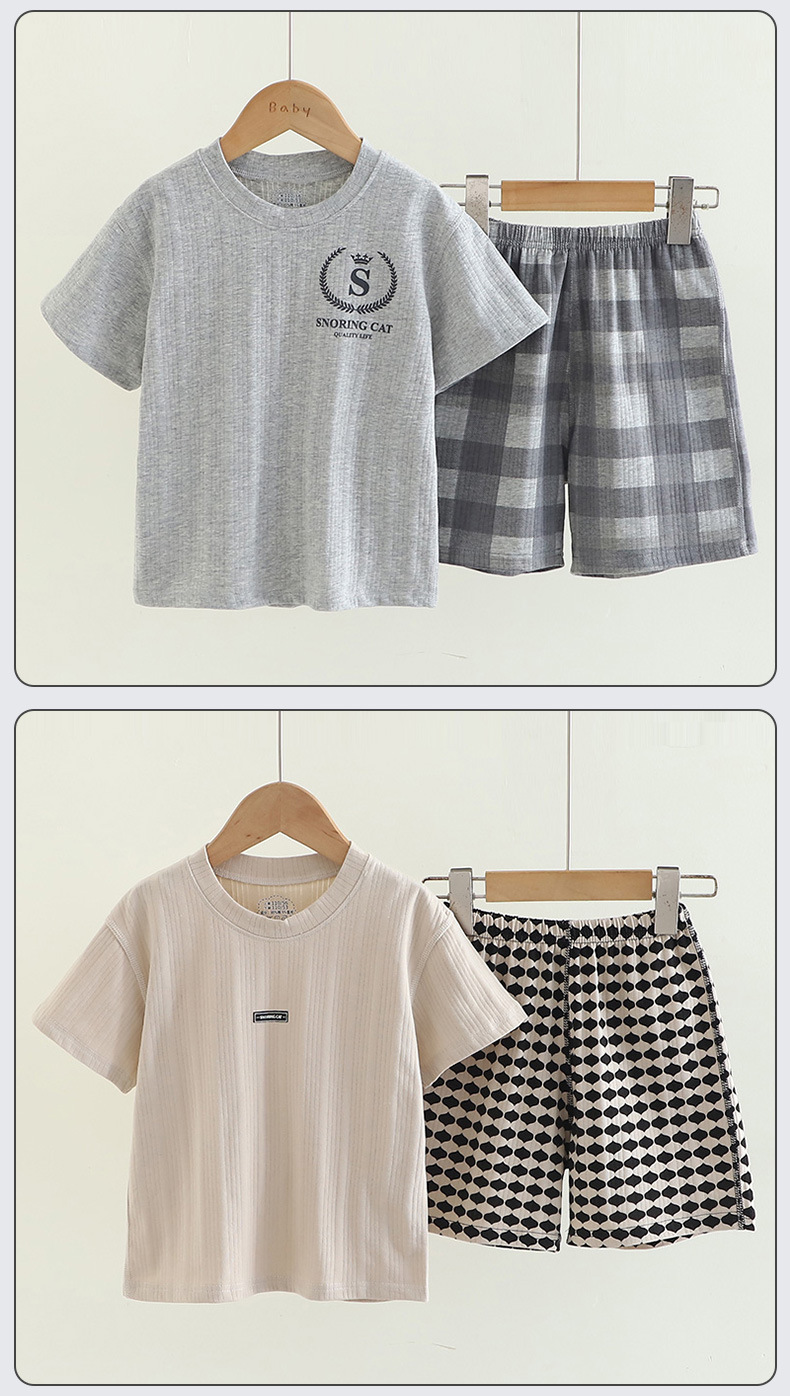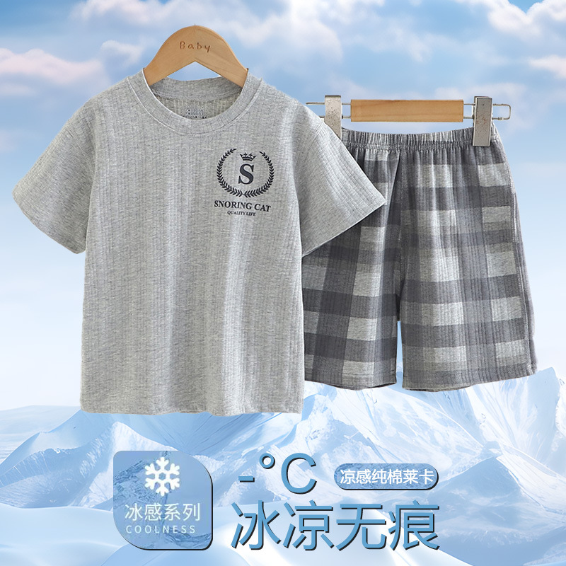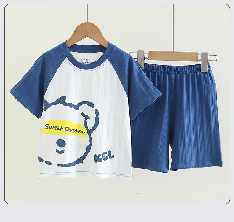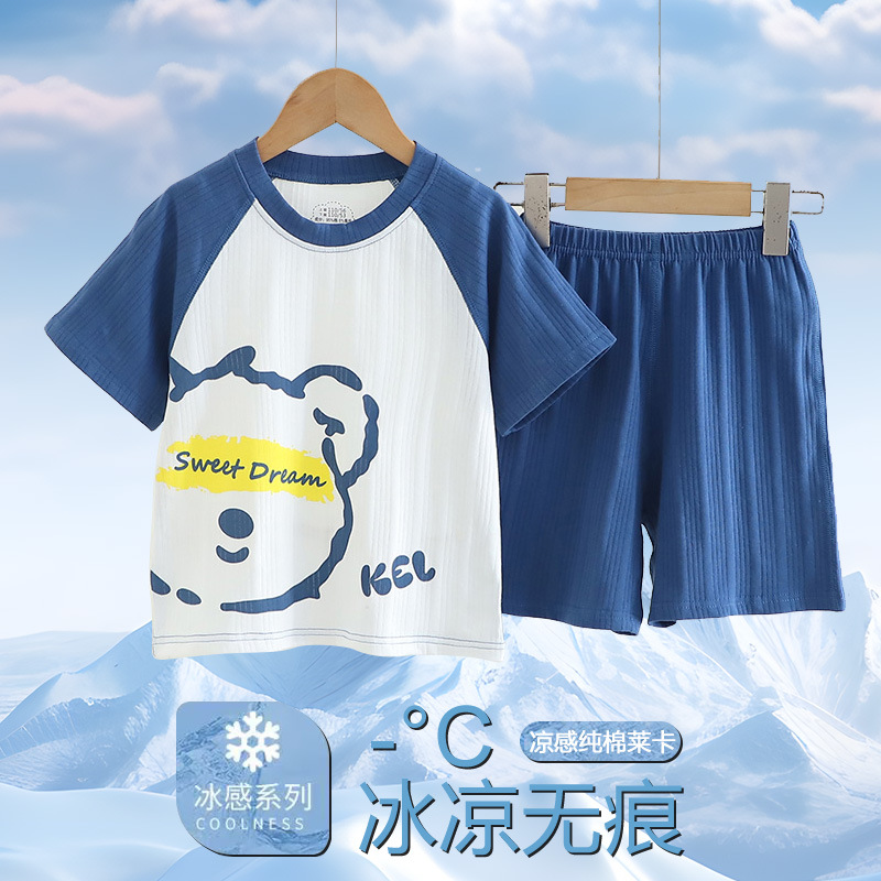 25 여름 부모-자식 의류, 가정복, 남아용 면 잠옷, 아동용 반팔 반바지 정장, 여아용 중대형 아동용 에어컨 의류