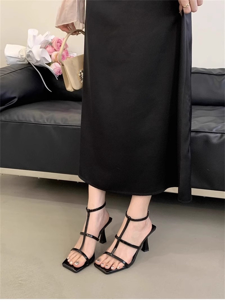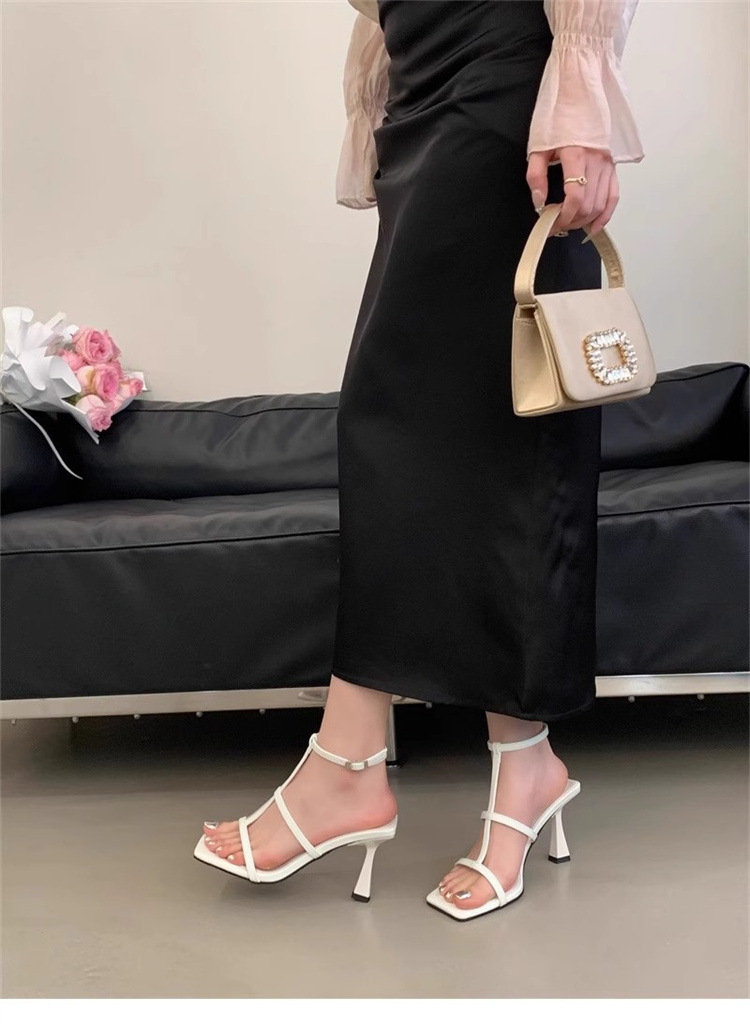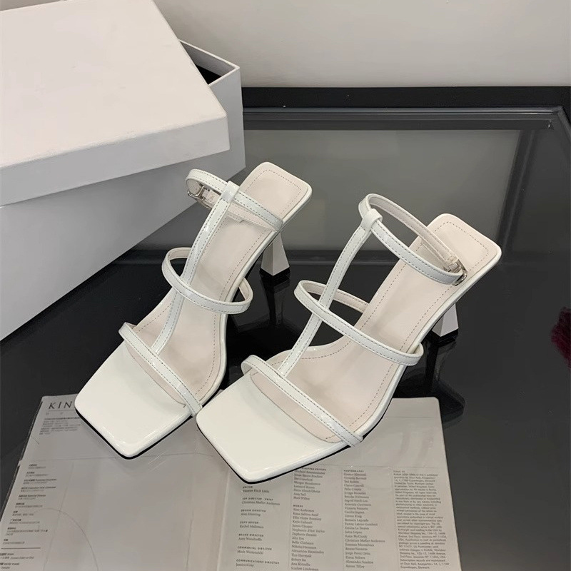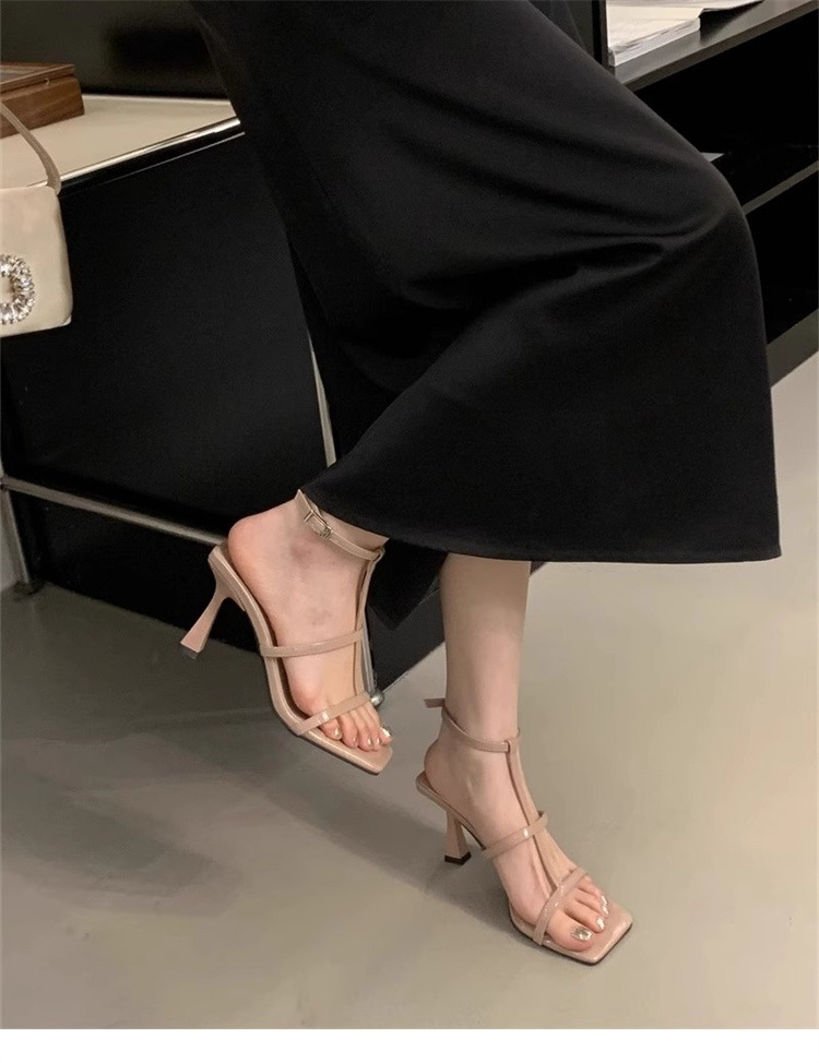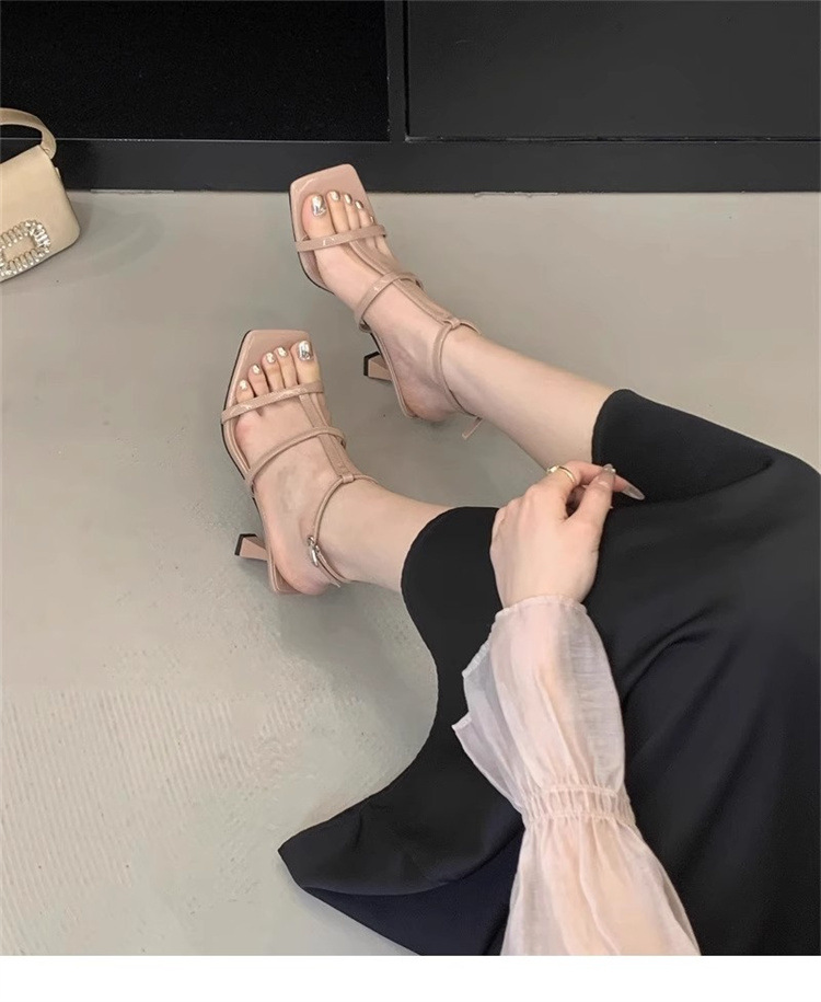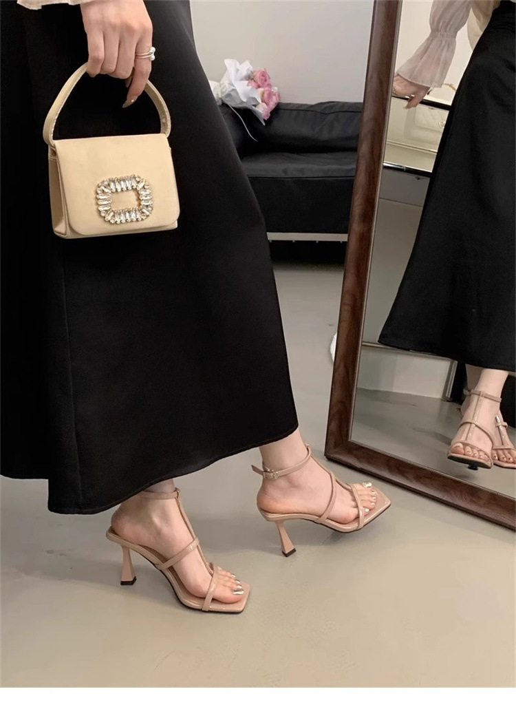 2025 년 여름 새로운 프랑스 스타일 알몸 핑크 하이힐 여성 영국 스타일 원토 얇은 힐 샌들