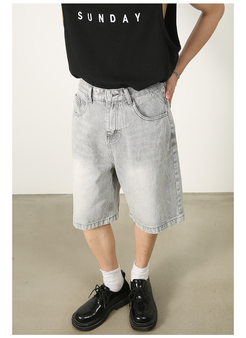 아메리칸 여름 신작 데님 반바지 남성 여름 인 트렌드 5부 팬츠 루즈하고 활용도가 높은 캐주얼 팬츠 트렌디