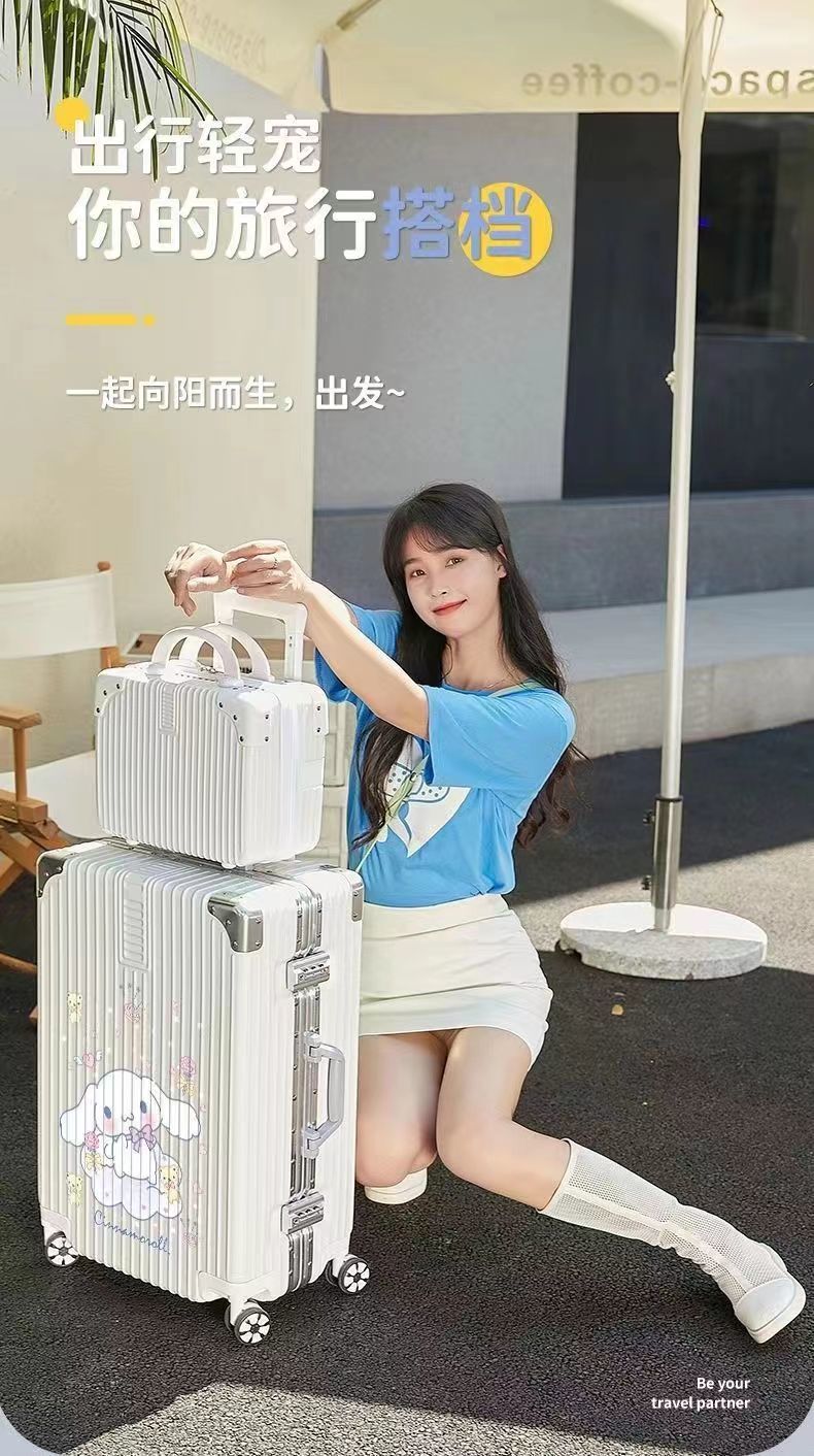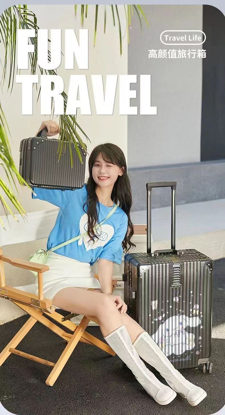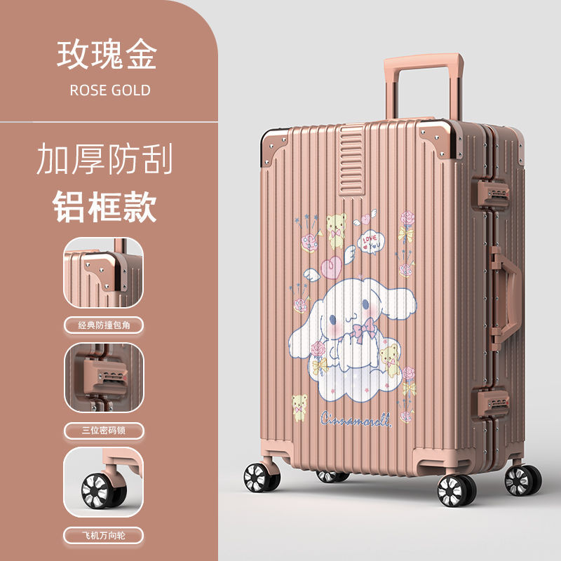 알루미늄 프레임 수하물 케이스 여성의 새로운 도착 트롤리 케이스 남성 학생 비밀번호 상자 만화 가방 한국식 견고하고 내구성있는 수하물 케이스