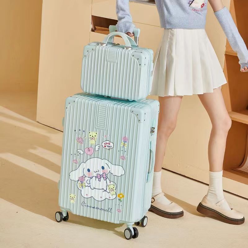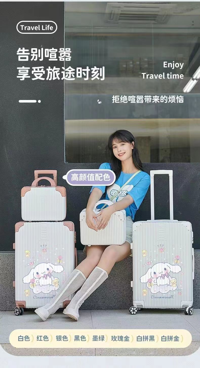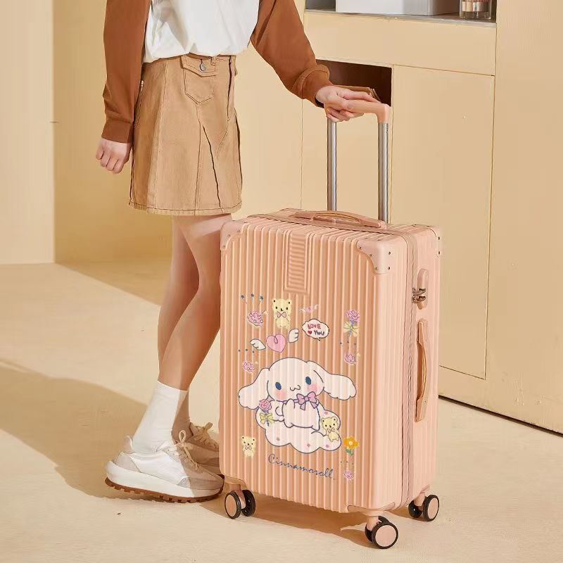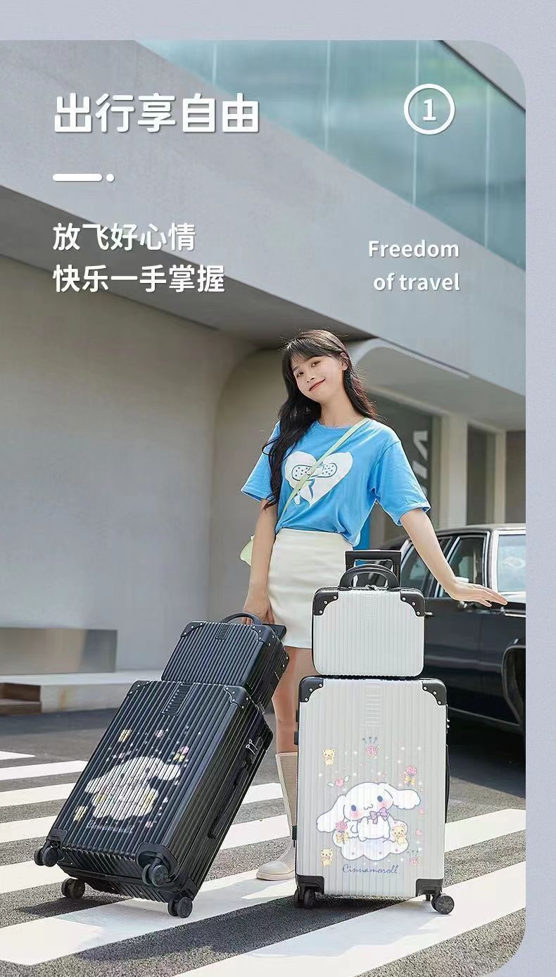 알루미늄 프레임 수하물 케이스 여성의 새로운 도착 트롤리 케이스 남성 학생 비밀번호 상자 만화 가방 한국식 견고하고 내구성있는 수하물 케이스