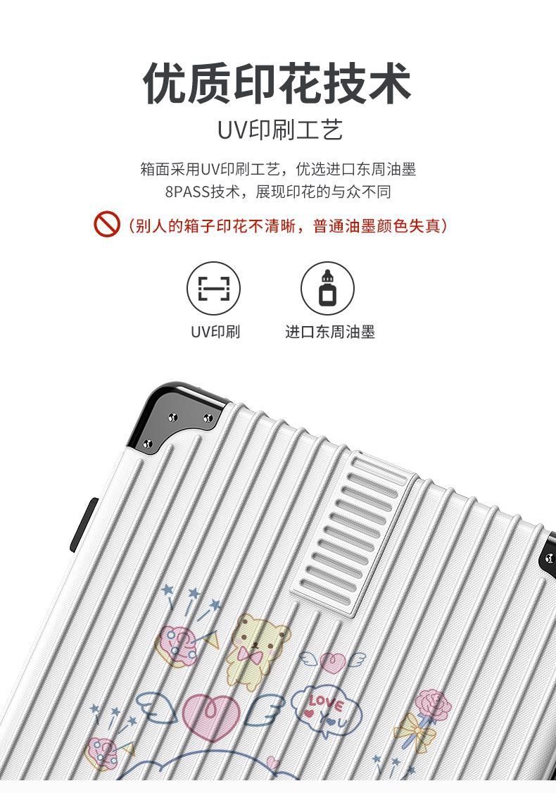알루미늄 프레임 수하물 케이스 여성의 새로운 도착 트롤리 케이스 남성 학생 비밀번호 상자 만화 가방 한국식 견고하고 내구성있는 수하물 케이스스토어 가기