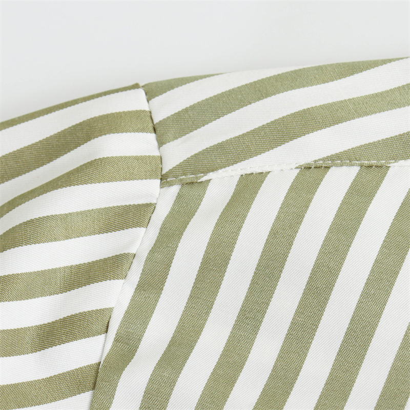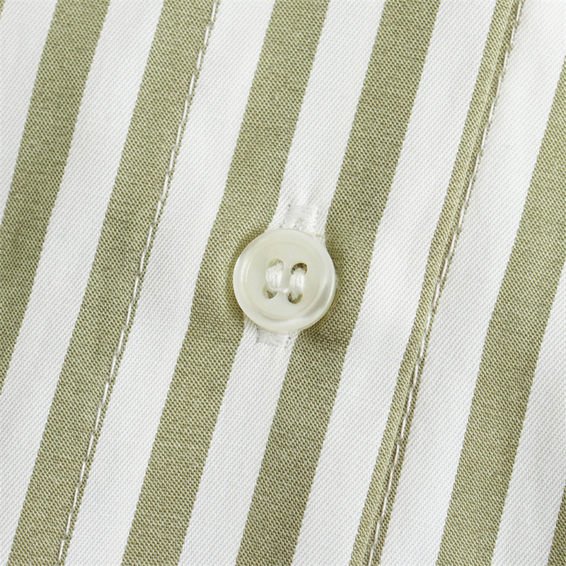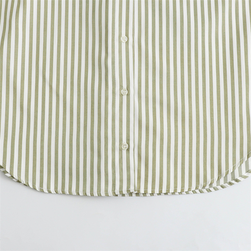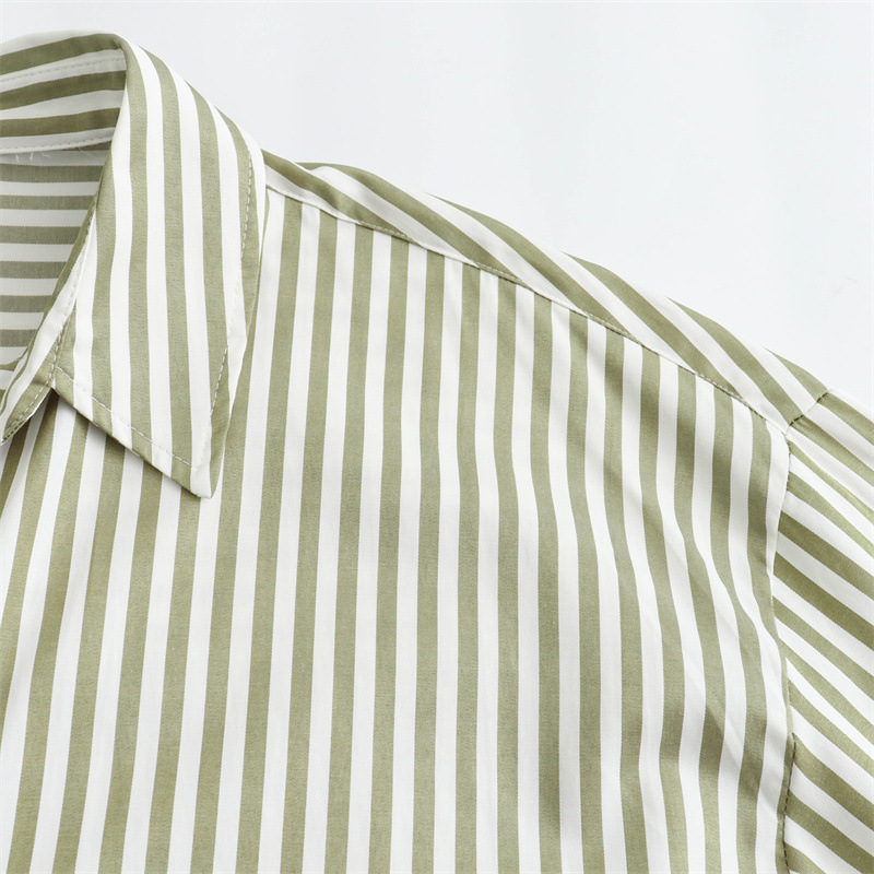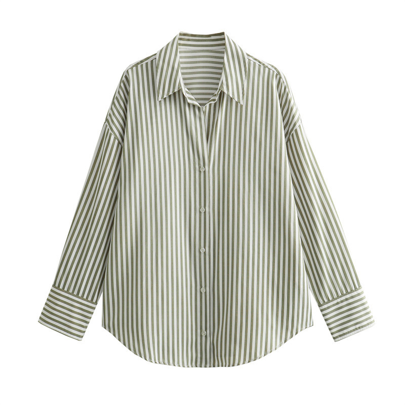 국경을 넘나드는 새로운 봄, 가을 여성의 새로운 유럽과 미국의 인기 옷깃 긴팔 스트라이프 셔츠 캐주얼 루즈 탑
