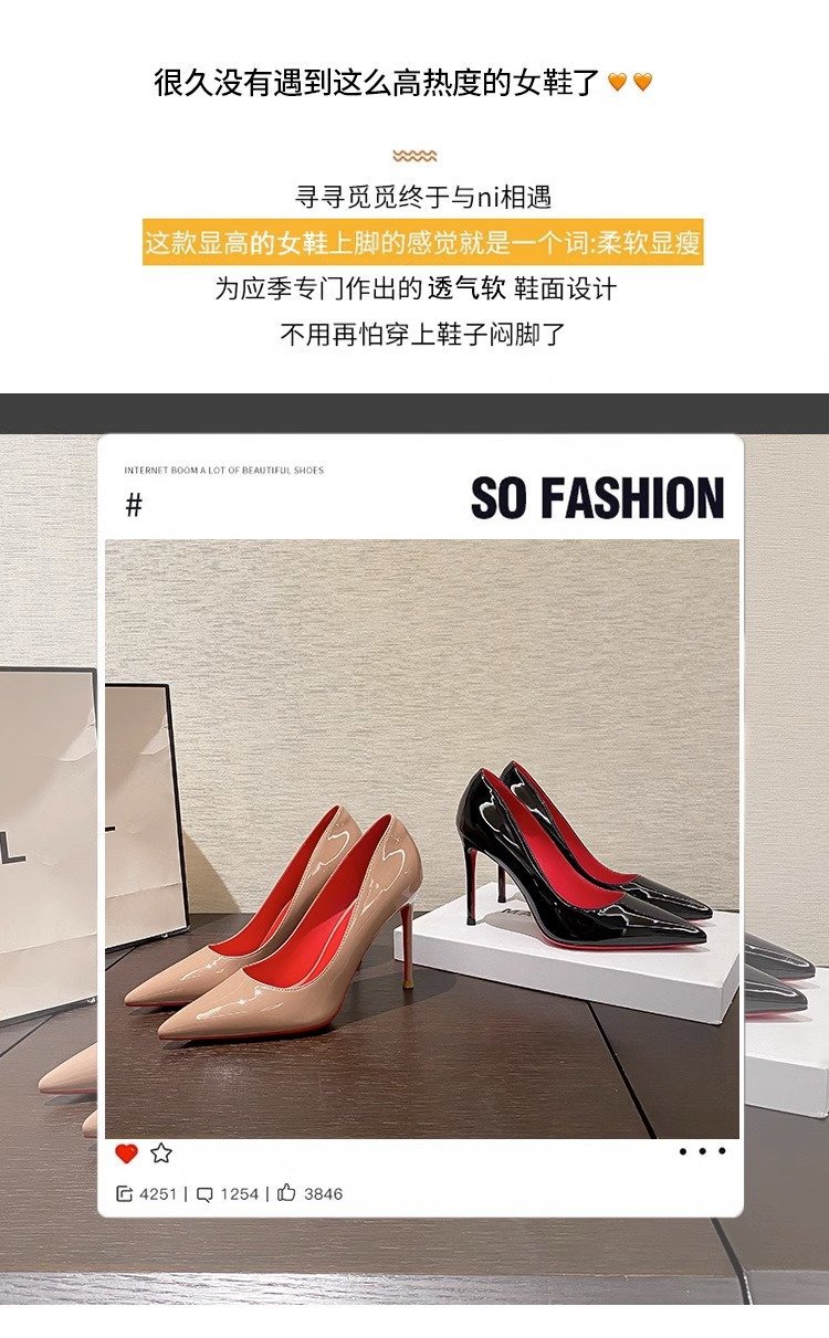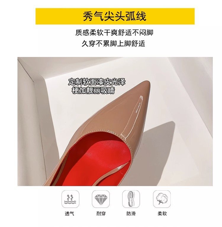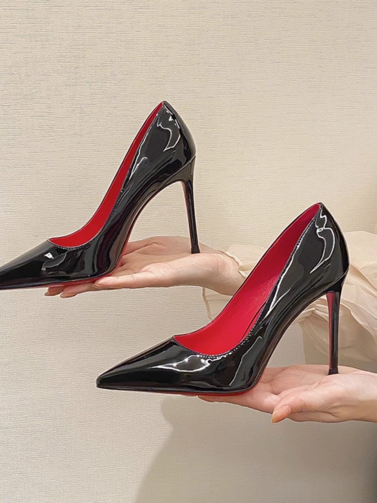 봄 2025 새로운 블랙 레드 솔 하이힐 여성의 뾰족한 스틸레토 섹시한 우울한 우아한 싱글 레이어 신발 특허 가죽 여성 신발스토어 가기