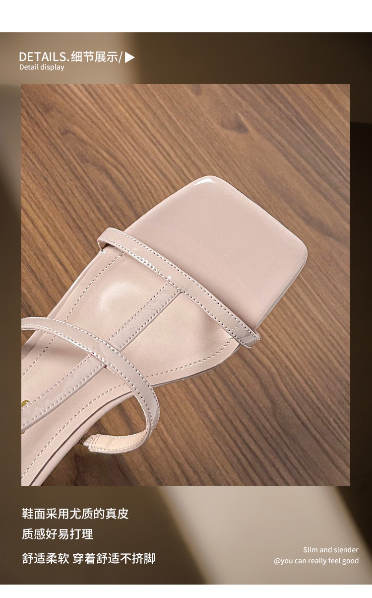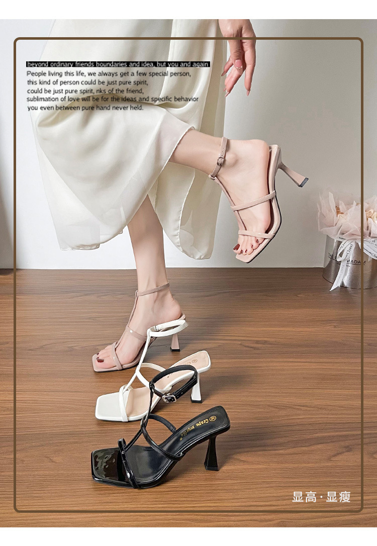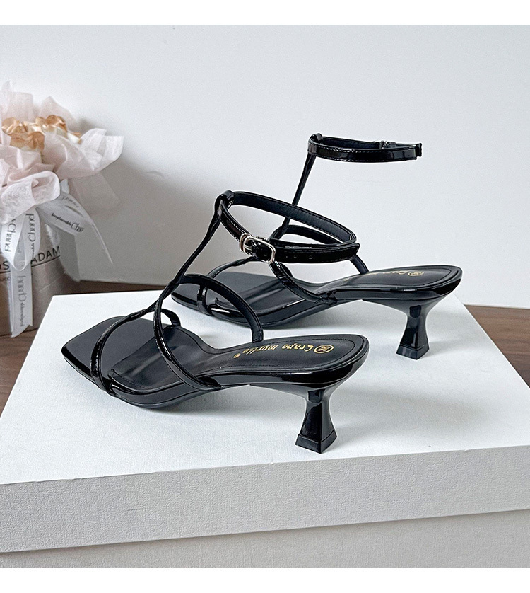 여성용 샌들 2025 여름 새 스타일 버클 스퀘어 토 오픈 토우 얇은 스트랩 섹시한 블랙 기질 하이힐