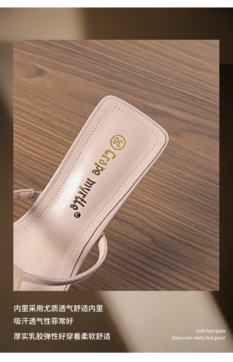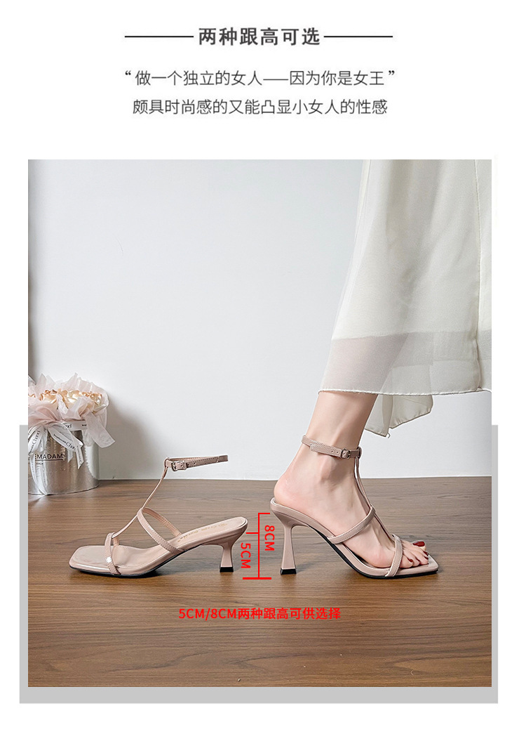 여성용 샌들 2025 여름 새 스타일 버클 스퀘어 토 오픈 토우 얇은 스트랩 섹시한 블랙 기질 하이힐스토어 가기