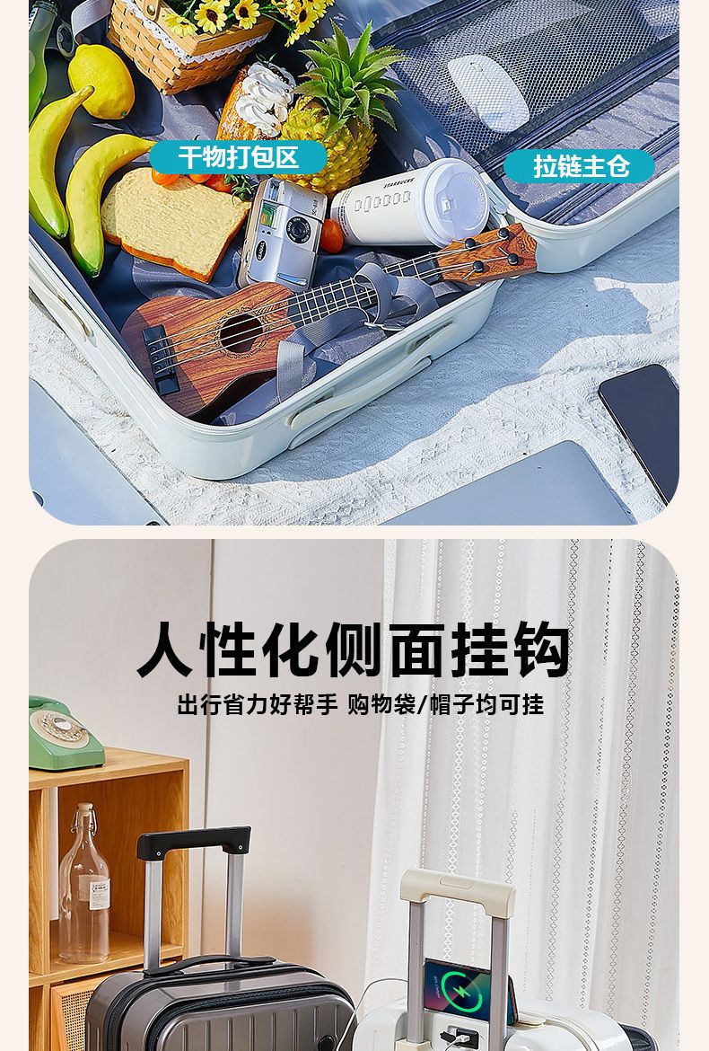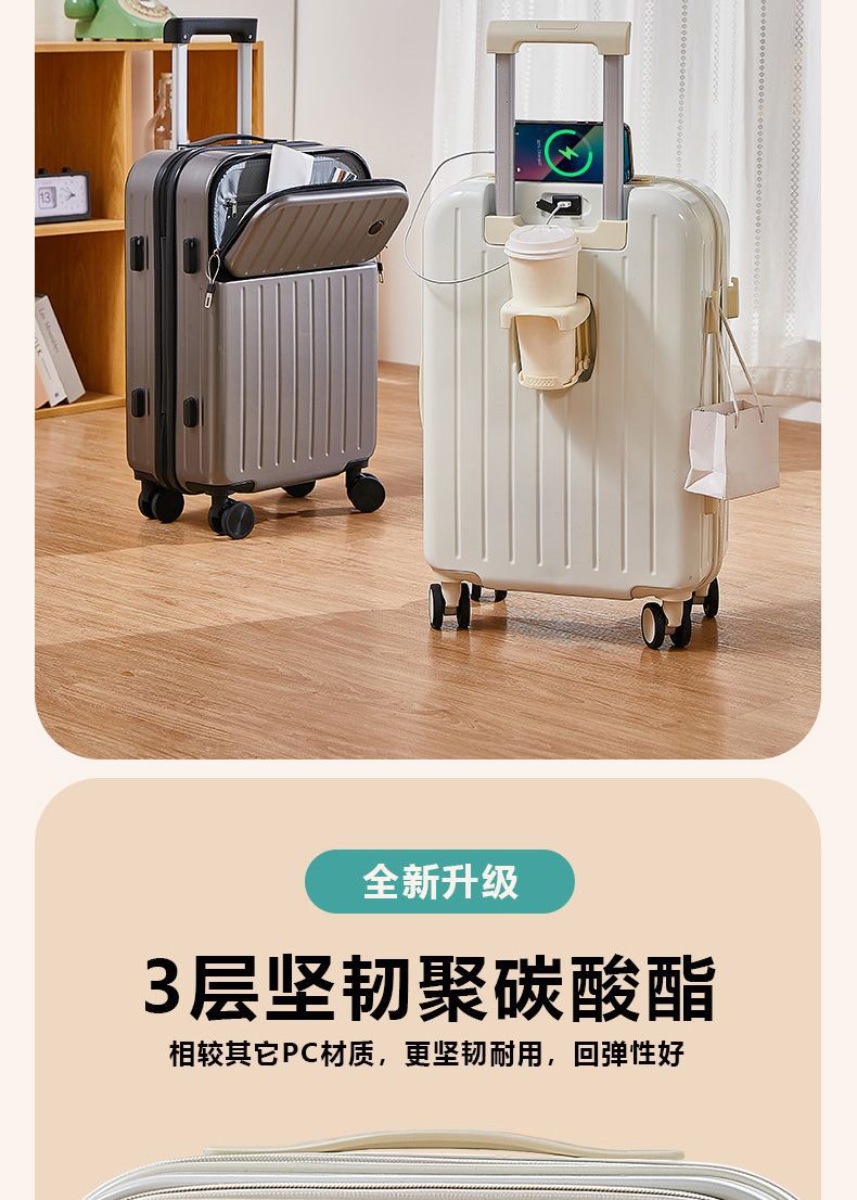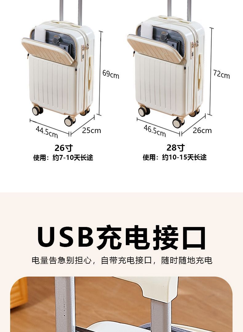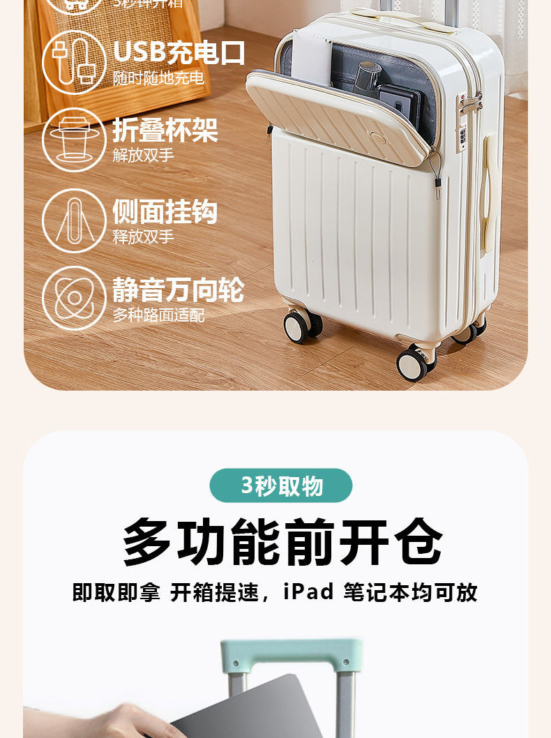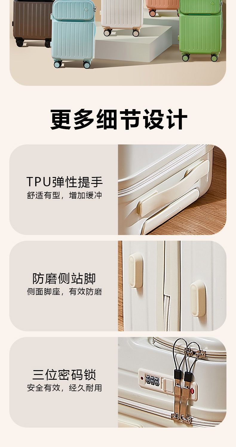 새로운 프론트 오프닝 학생 다기능 수하물 유니버설 휠 트롤리 케이스 편리하고 튼튼한 비밀번호 탑승 여행 케이스스토어 가기