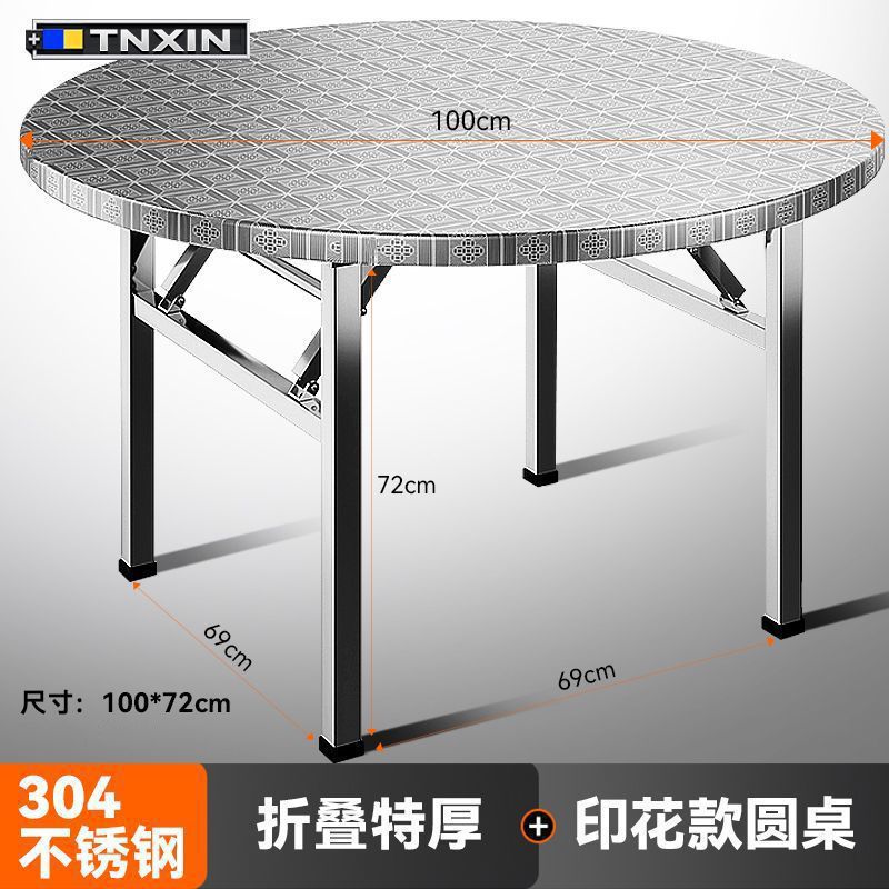 두꺼운 스테인레스 스틸 접이식 원형 테이블 야외 거실 경제적 인 가정용 식탁 임대실 식사 원형 테이블스토어 가기