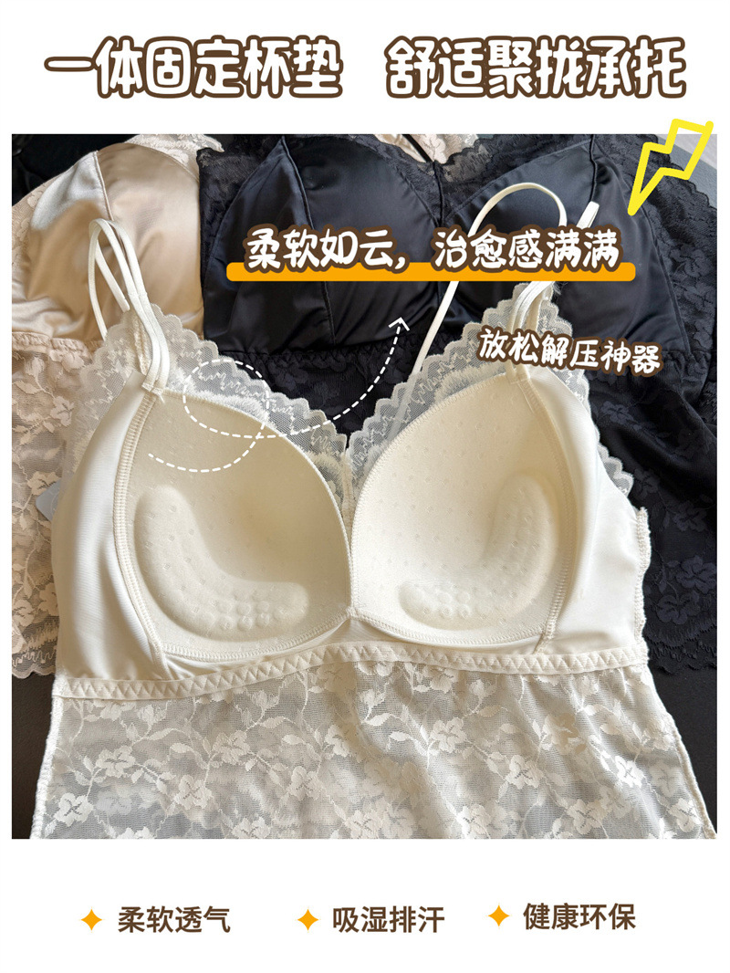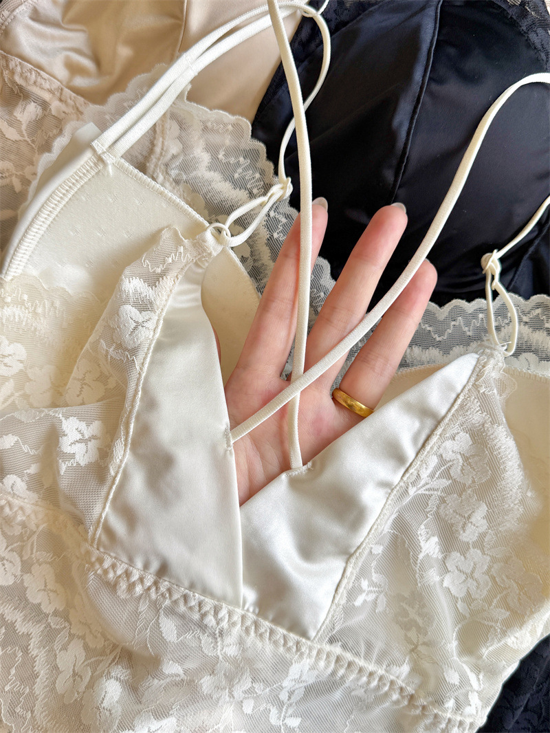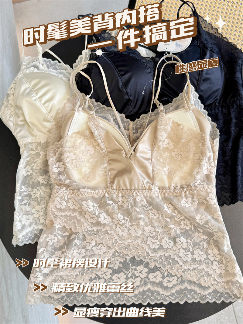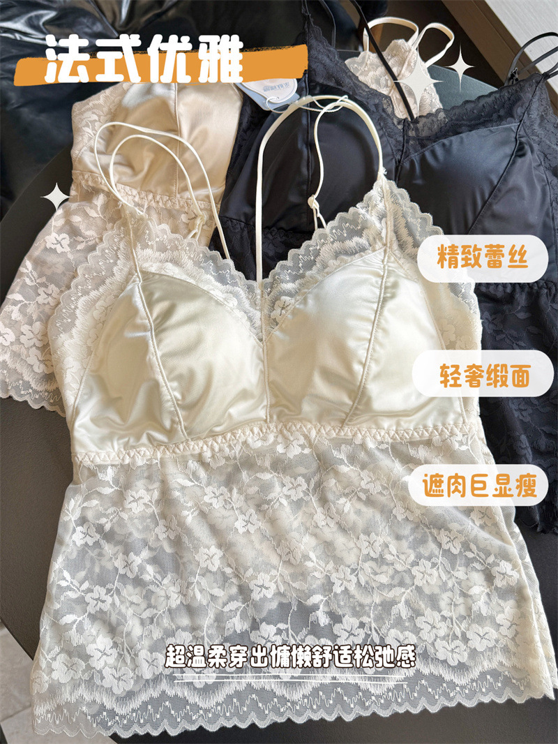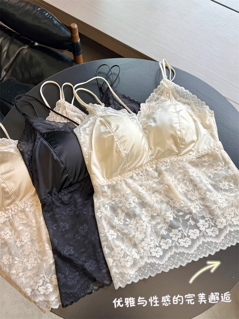가슴 패드와 아름다운 등이 있는 여름용 얇은 스타일의 새로운 가벼운 럭셔리 새틴 섹시한 레이스 캐미솔 여성용 이너웨어스토어 가기