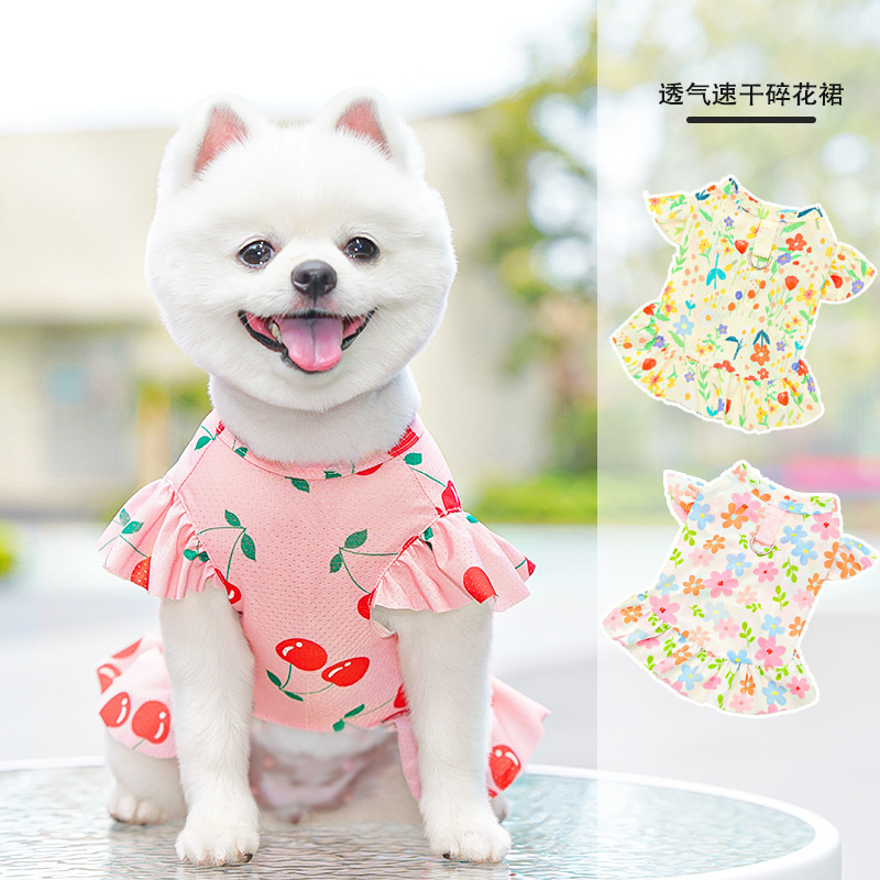 얼음 실크 고양이 애완 동물 고양이 옷 큰 개 원피스 봄과 여름 개 개 용품 꽃 신선한 난쟁이 고양이