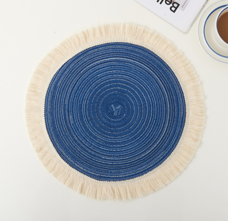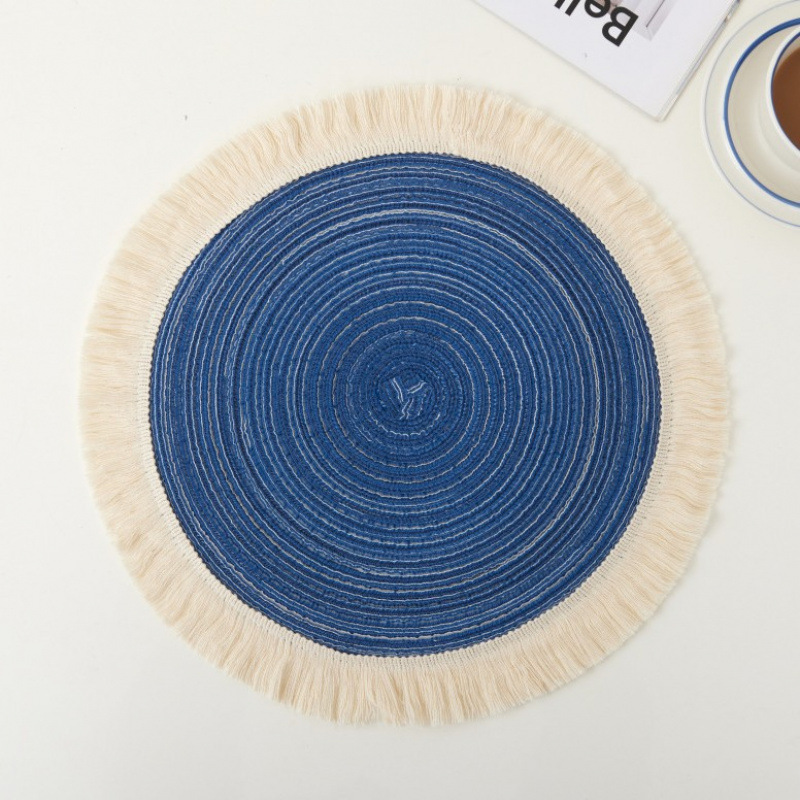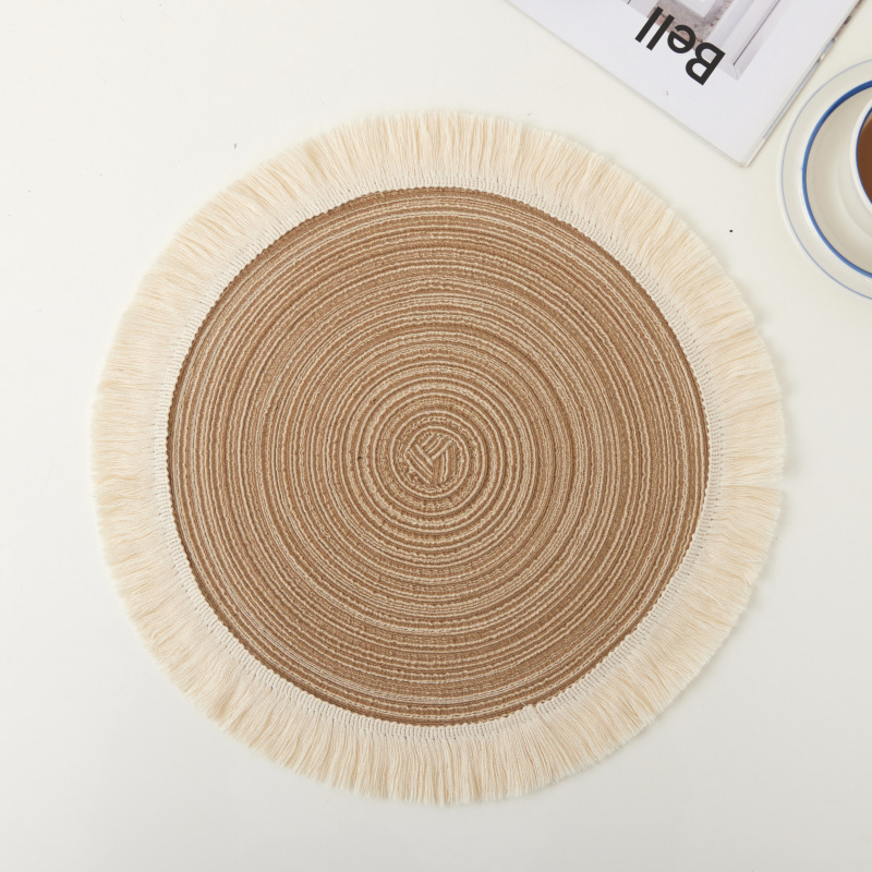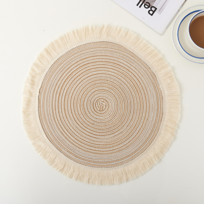 노르딕 라미 수제 다이닝 플레이트 매트 웨스턴 푸드 플레이트 매트 다이닝 테이블 안티 슬립 매트 코스터 간단한 라운드 볼 매트 코튼 원사 플레이스 매트스토어 가기
