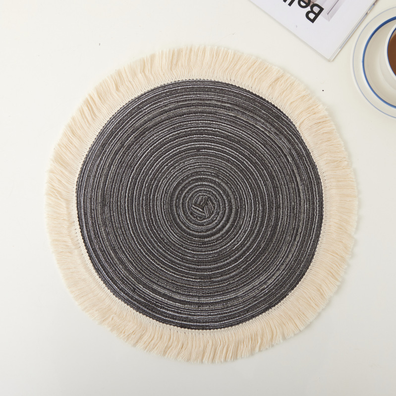 노르딕 라미 수제 다이닝 플레이트 매트 웨스턴 푸드 플레이트 매트 다이닝 테이블 안티 슬립 매트 코스터 간단한 라운드 볼 매트 코튼 원사 플레이스 매트