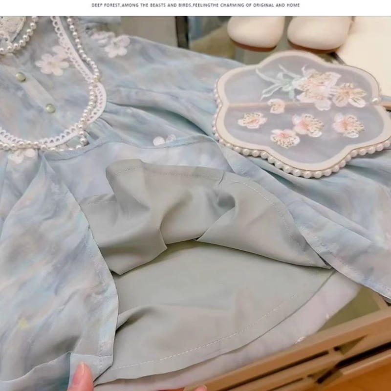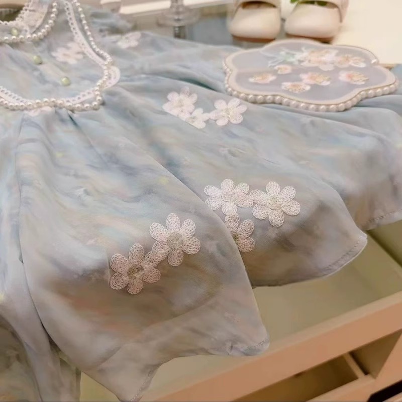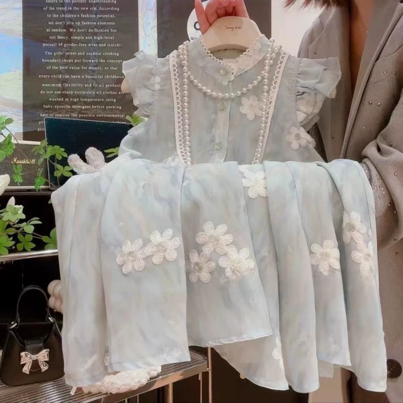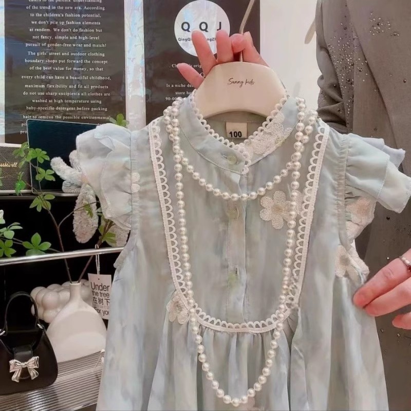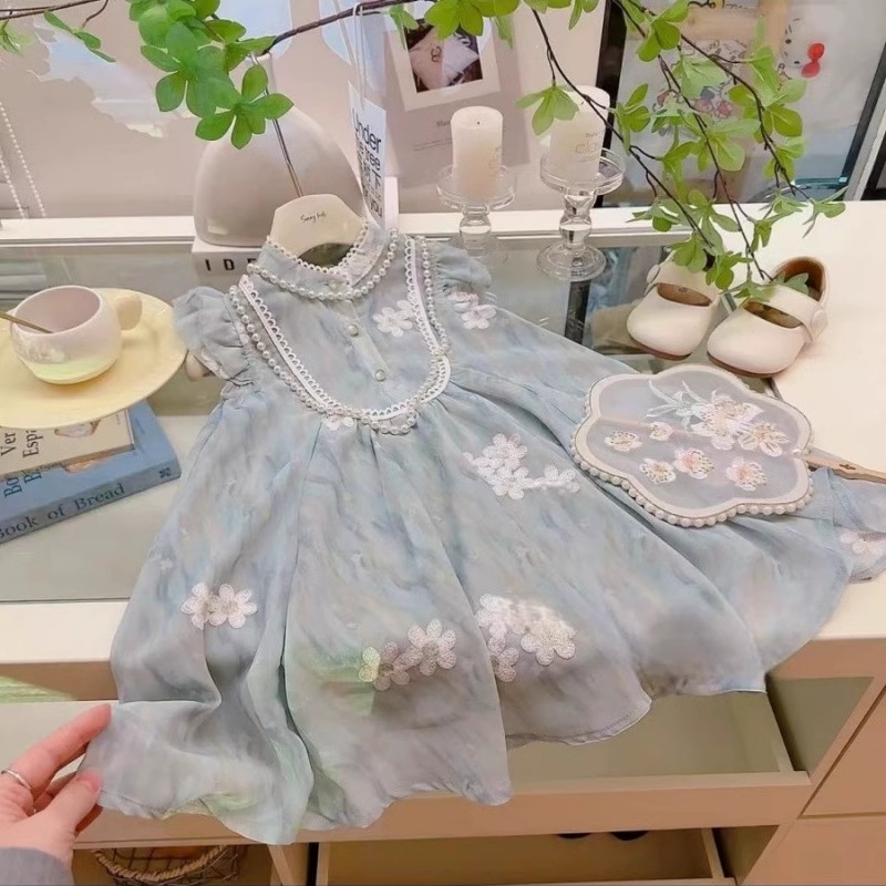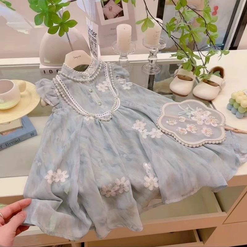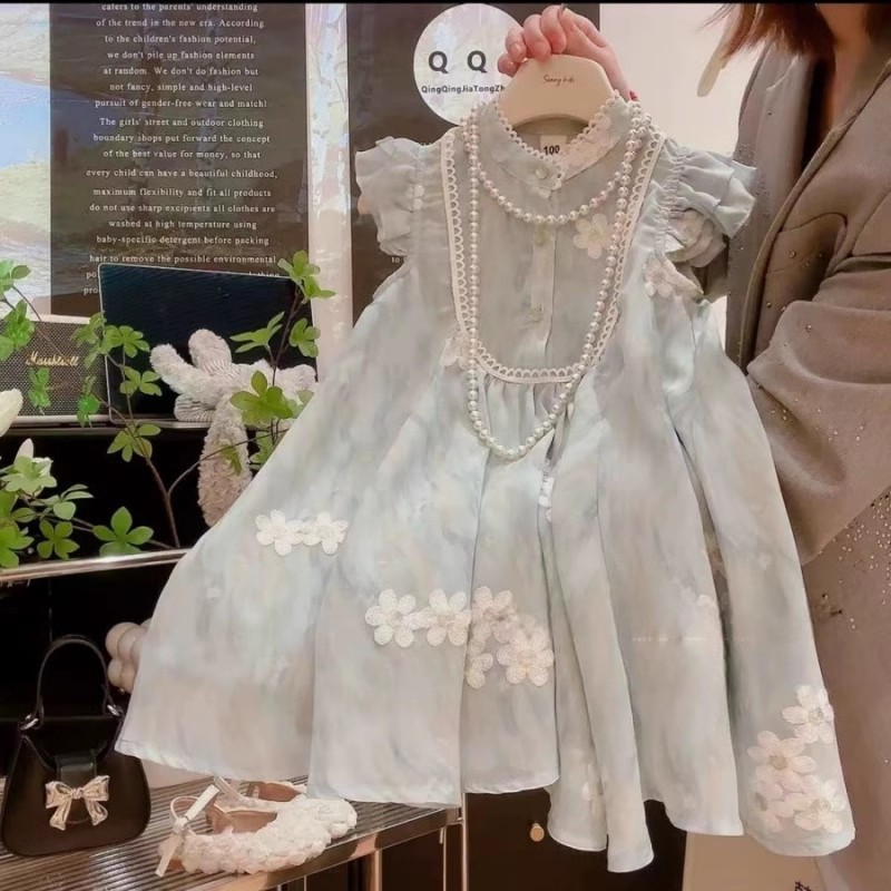 여자 여름 자수 드레스 2025 여름 새로운 스타일 1-7 세 여자 아동 의류 어린 소녀 여름 스커트
