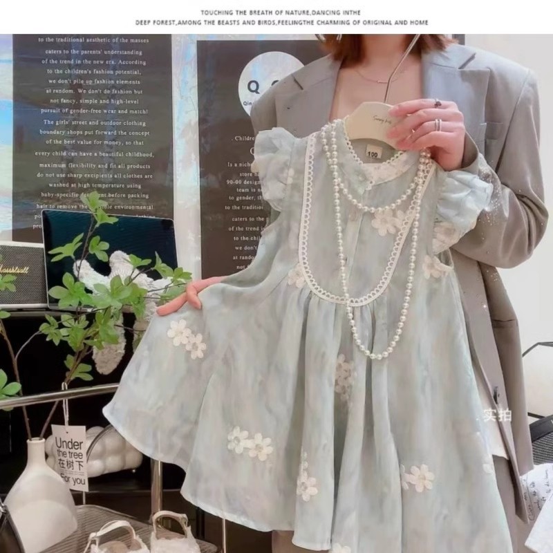 여자 여름 자수 드레스 2025 여름 새로운 스타일 1-7 세 여자 아동 의류 어린 소녀 여름 스커트스토어 가기