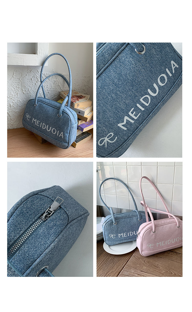 여성을위한 한국어 알파벳 데님 가방 2025 새로운 유행 패션 캐주얼 겨드랑이 가방 다목적 대용량 핸드백