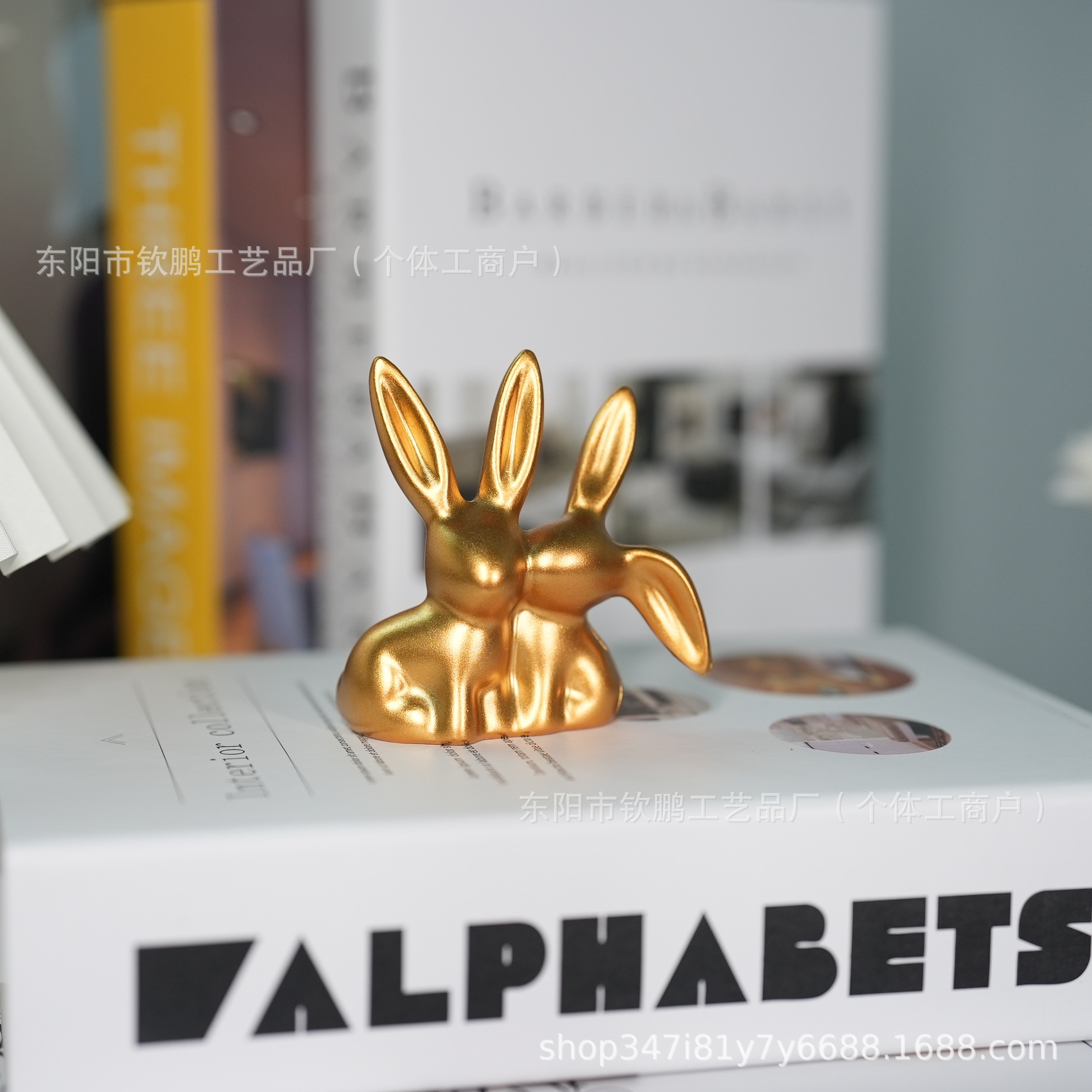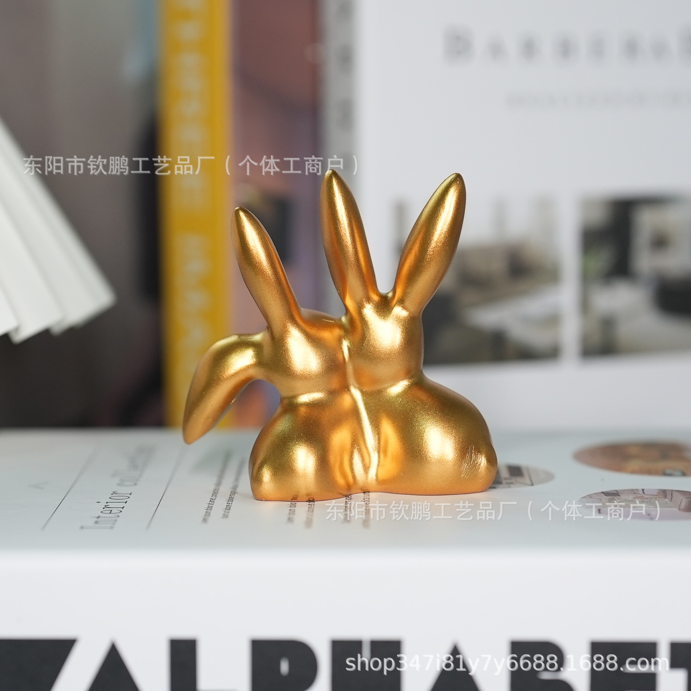 아마존의 새로운 골든 키스 커플 토끼 조각상, 독특한 미적 수지, 수집가를 위한 휴일 선물