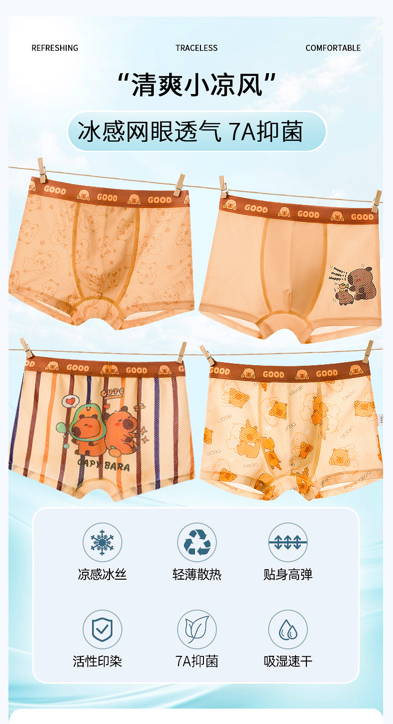 [여름] 남아용 속옷, 아이스 실크 통기성 얇은 스타일, 편안하고 항균 프린트, 남아 아동 도매, 통기성 좋고 편안함
