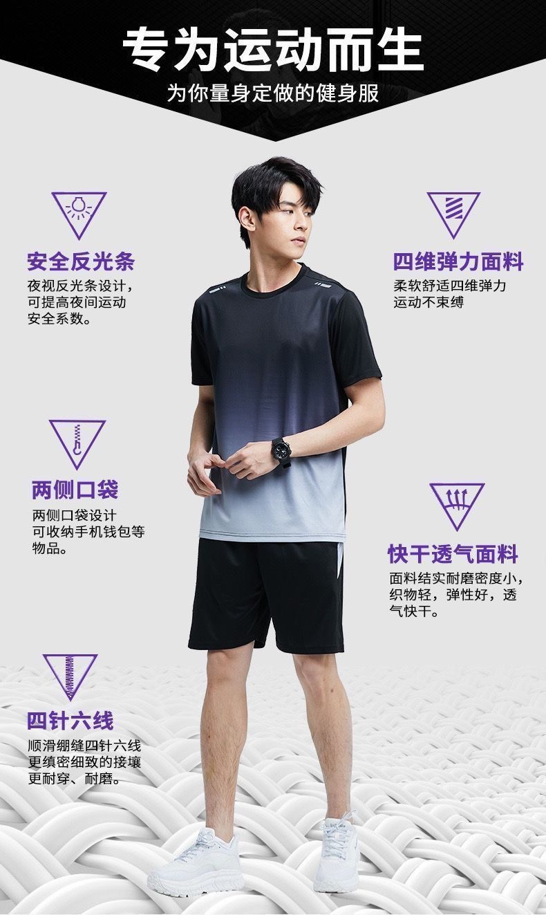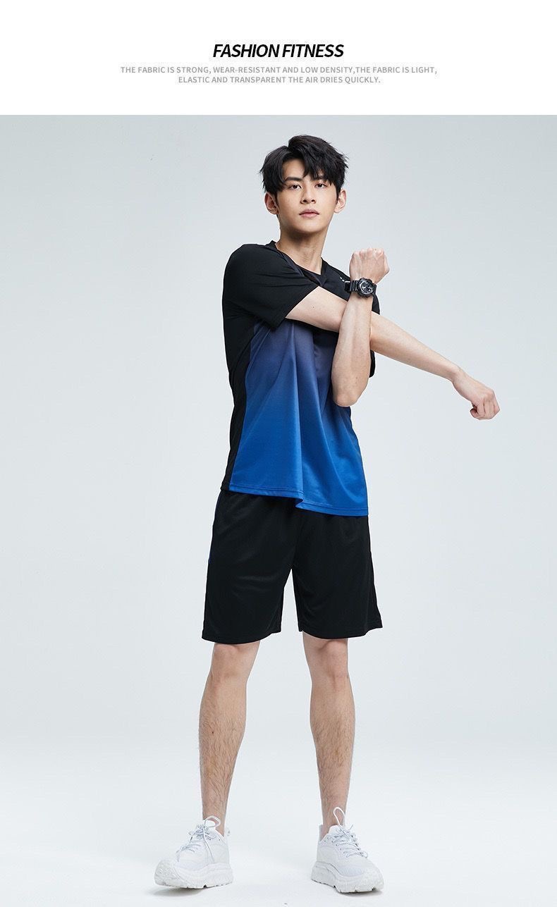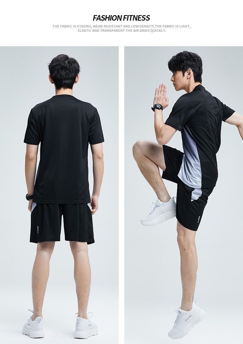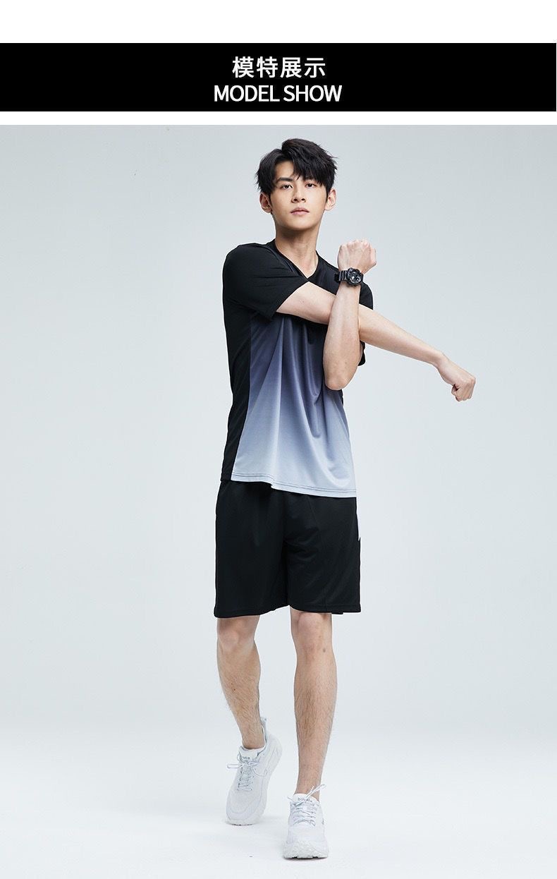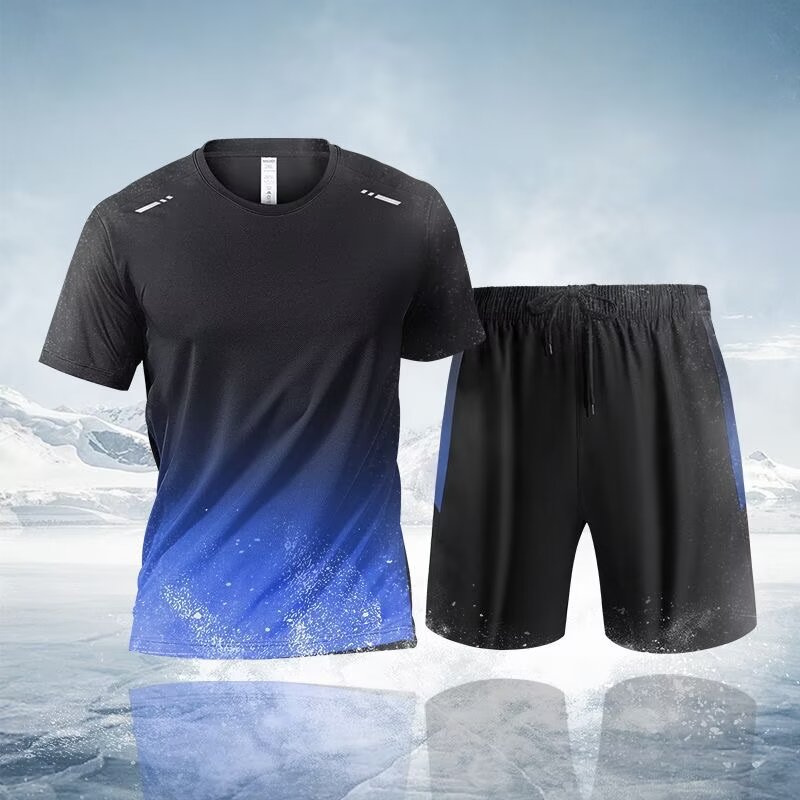 남성과 여성을 위한 크로스보더 세트 속건성 슈트, 스포츠 야외 달리기 반팔 대형 캐주얼 슈트, 아이스 실크 시원한 속건성 슈트스토어 가기