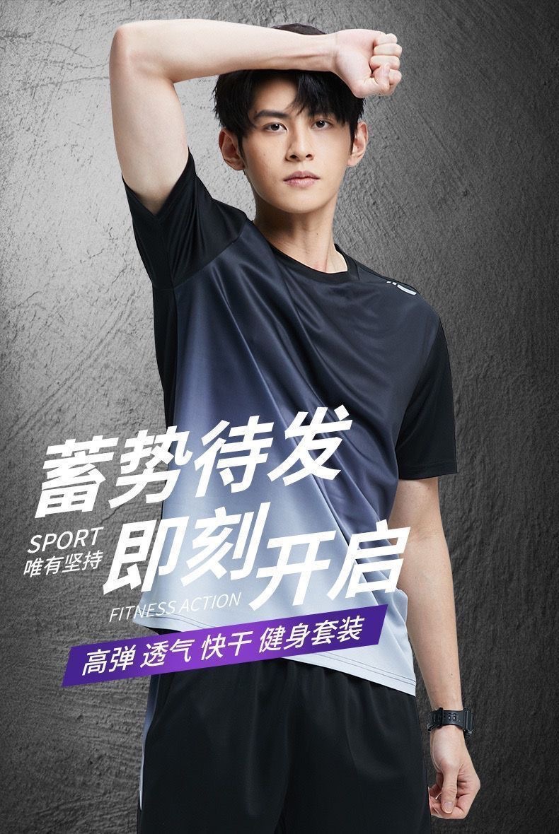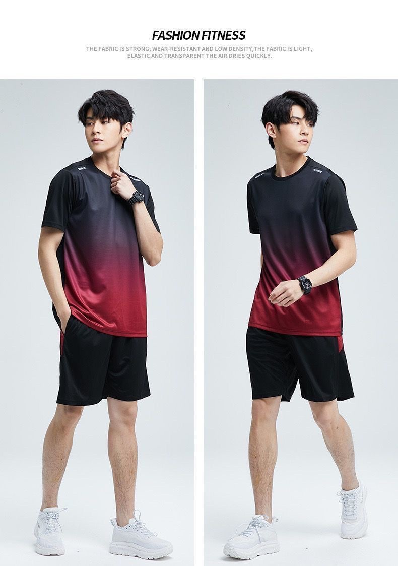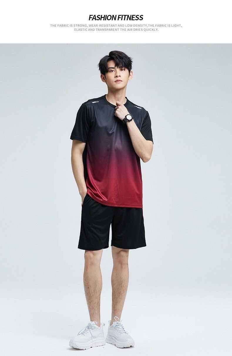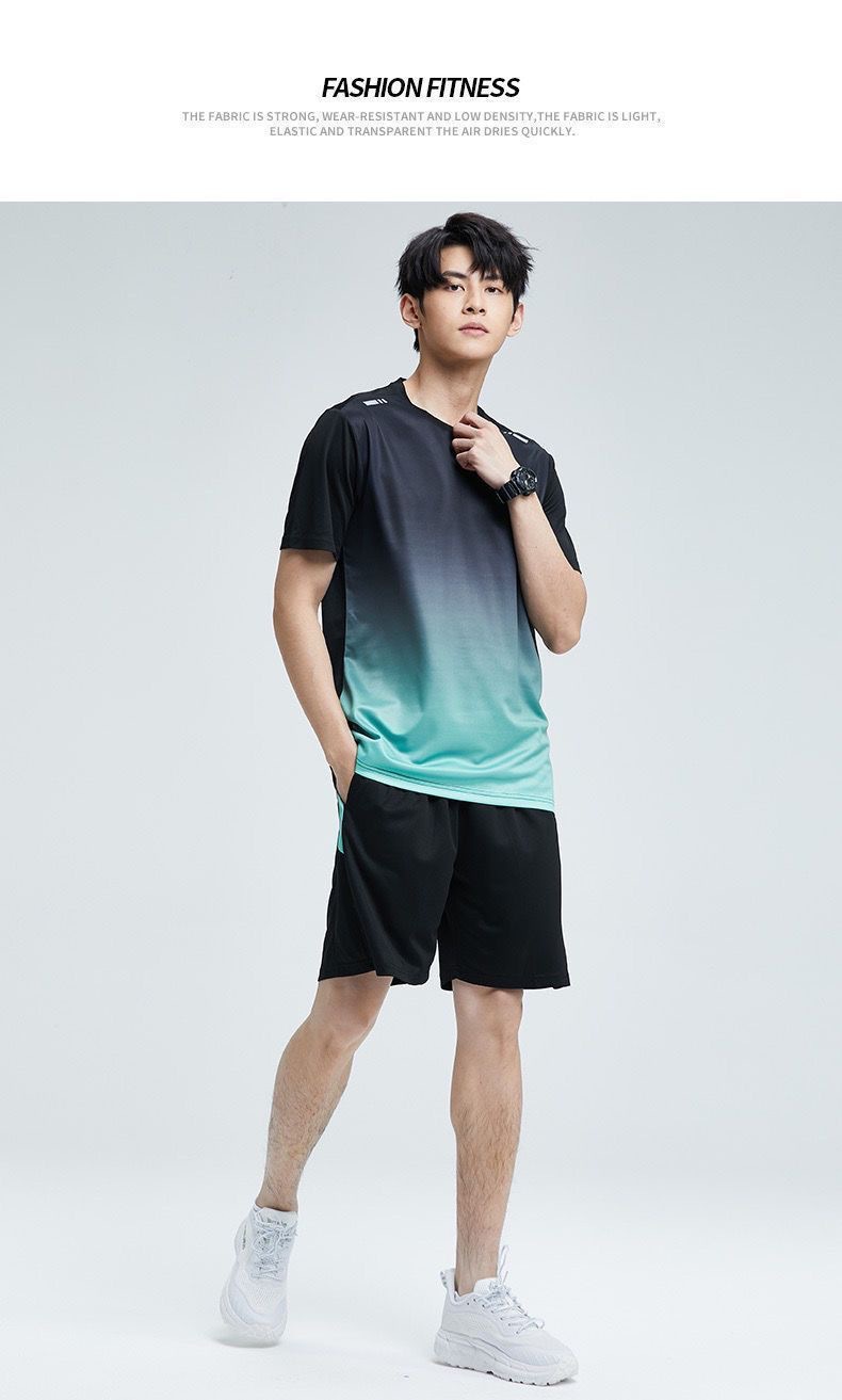 남성과 여성을 위한 크로스보더 세트 속건성 슈트, 스포츠 야외 달리기 반팔 대형 캐주얼 슈트, 아이스 실크 시원한 속건성 슈트스토어 가기
