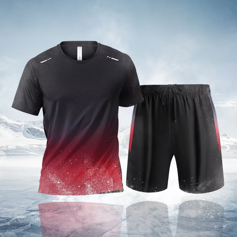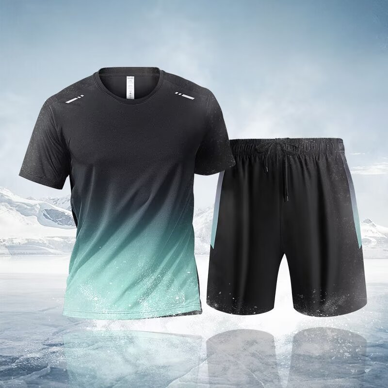 남성과 여성을 위한 크로스보더 세트 속건성 슈트, 스포츠 야외 달리기 반팔 대형 캐주얼 슈트, 아이스 실크 시원한 속건성 슈트