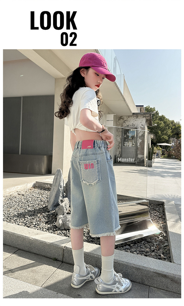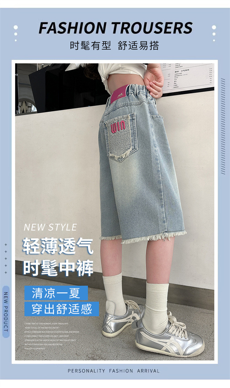 여아 데님 반바지 2026 여름 중대형 아동용 한국 스타일 레터링 다용도 루즈핏 트렌디한 밑단이 웨이브 처리된 얇은 5부 바지스토어 가기
