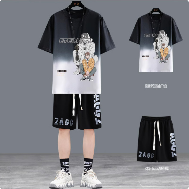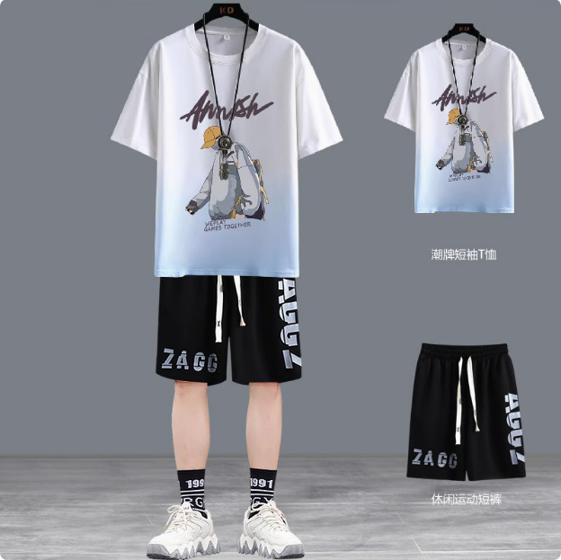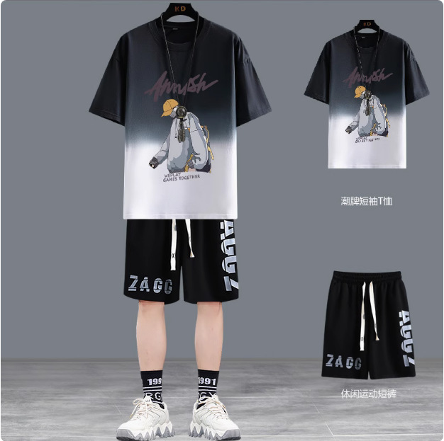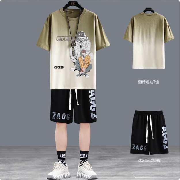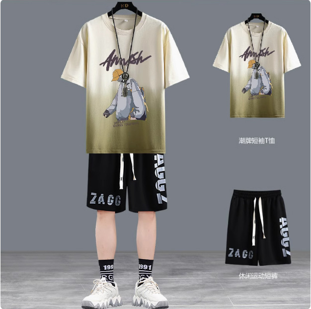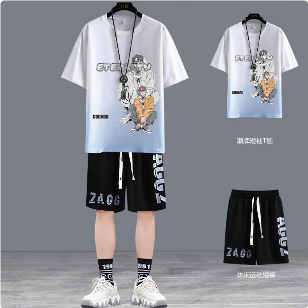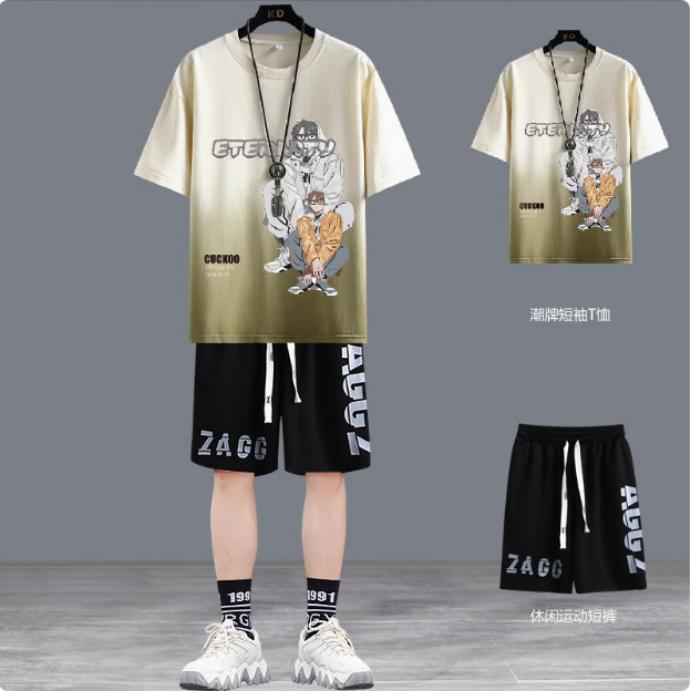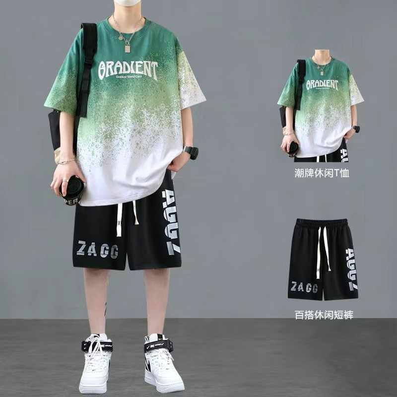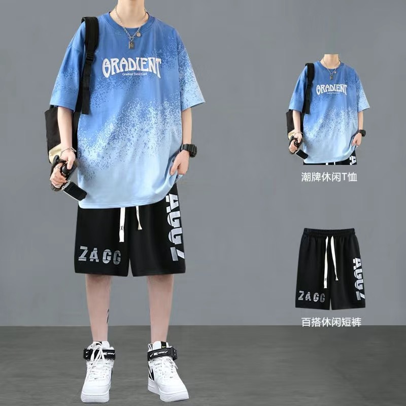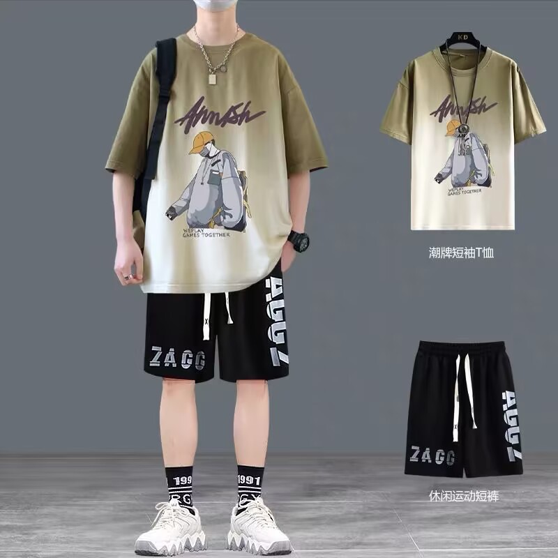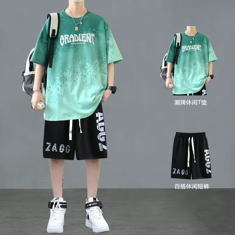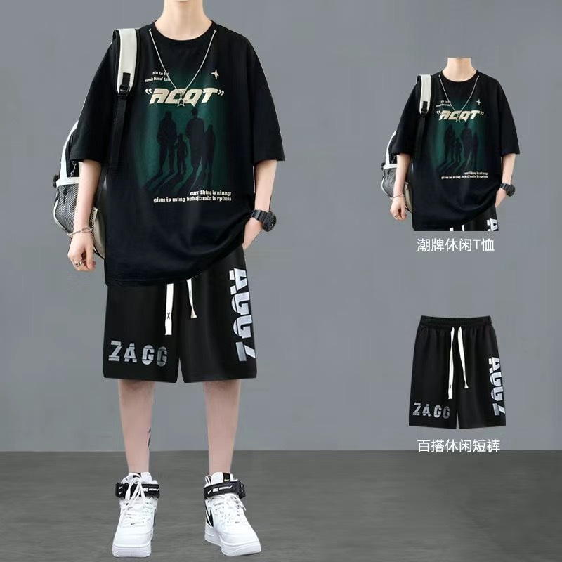 청소년 여름 반팔 티셔츠 반바지 캐주얼 스포츠 정장 소년 트렌디 브랜드 잘 생긴 15 세 13 중학생스토어 가기