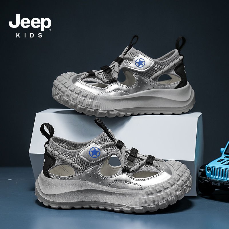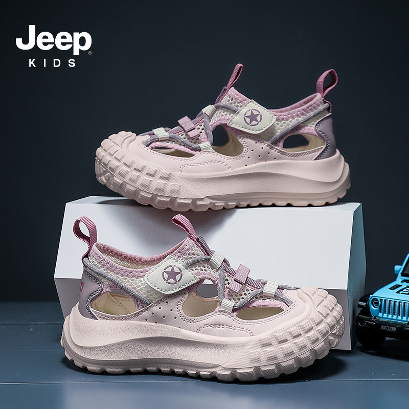 Jeep 소년 샌들 2025 여름 신작 어린이 샌들 편리한 벨크로 소녀 중공 디자인 리버 트레이싱 신발
