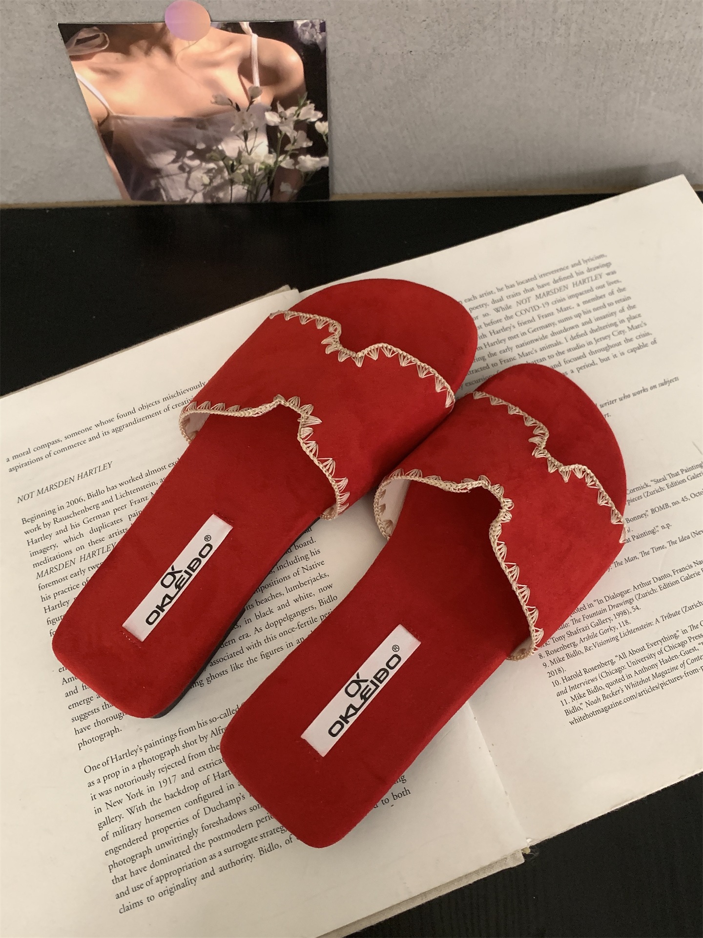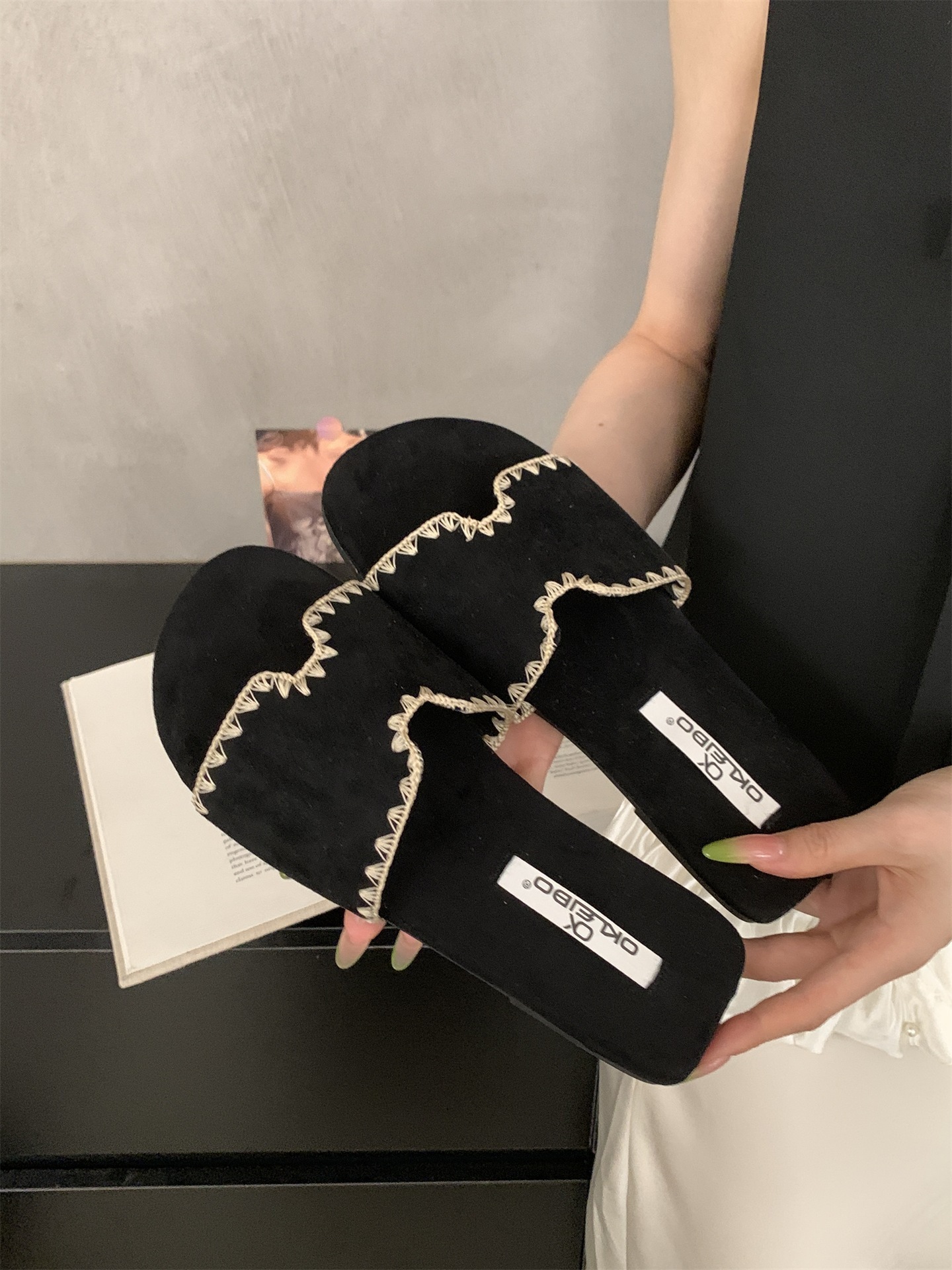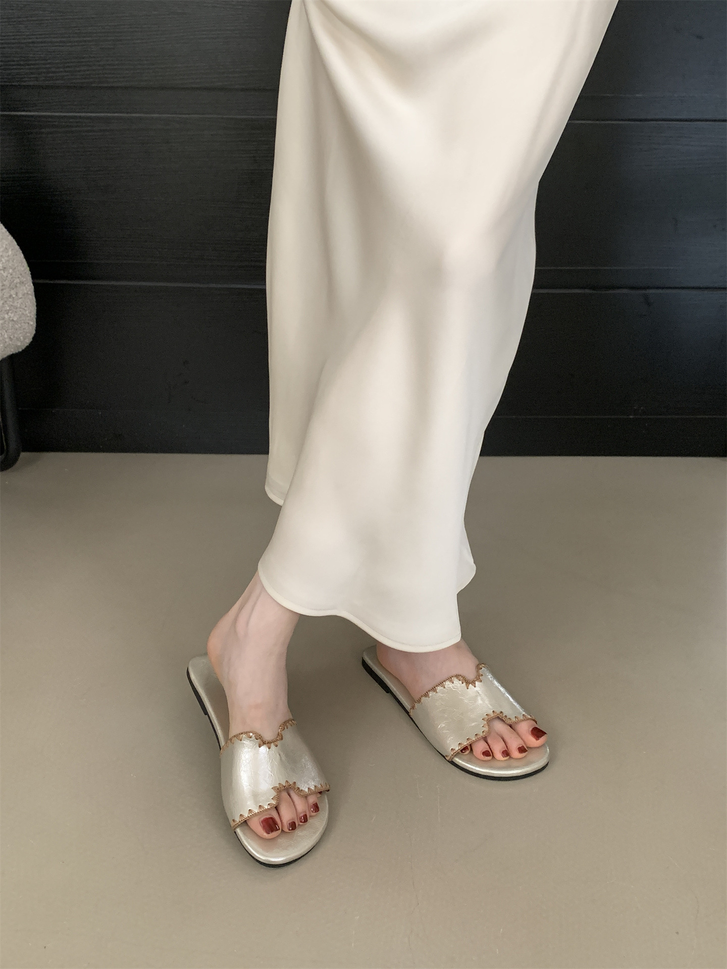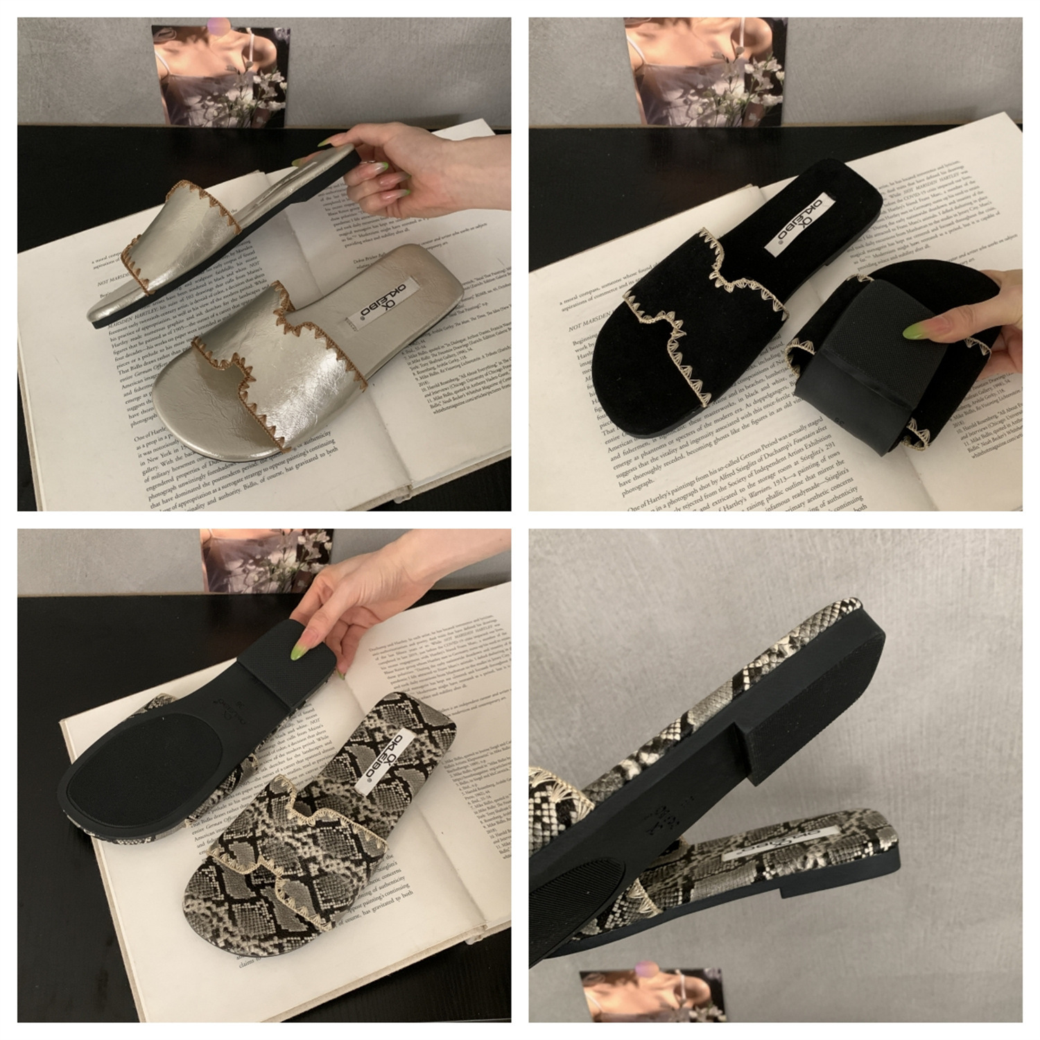 2025 새로운 인터넷 연예인 여름 스퀘어 헤드 H 자형 비치 슬리퍼 여성 샌들 외부 착용 부드러운 가죽 플랫 샌들