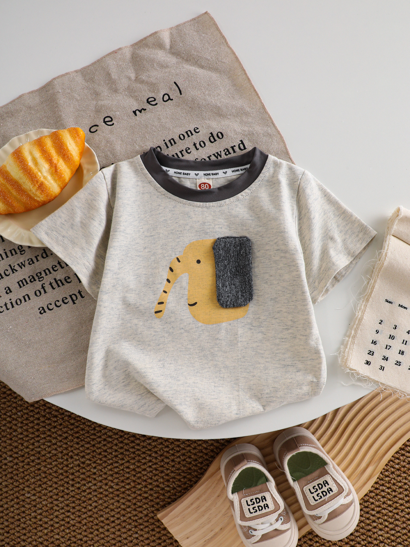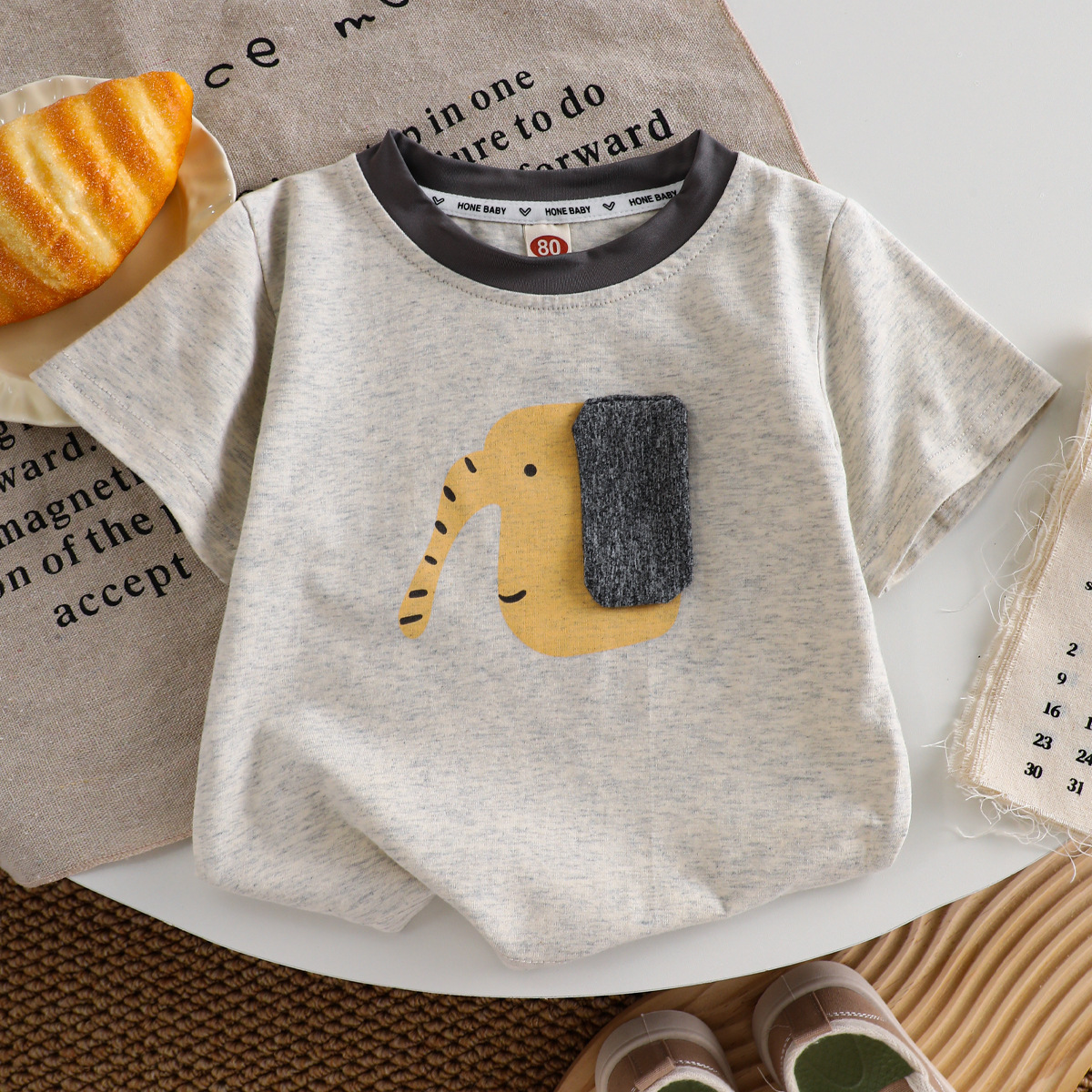 어린이 스트레치 반팔 티셔츠 여름 새 소년 입체 코끼리 귀 여름 어린이 착용 아기 반팔 티셔츠