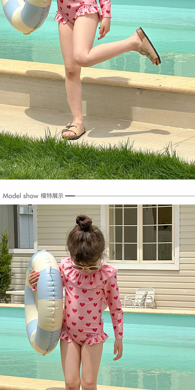 2025 여름 새로운 어린이 수영복 소녀 긴 소매 선스크린 수영복 사랑 온천 해변 휴일 수영복