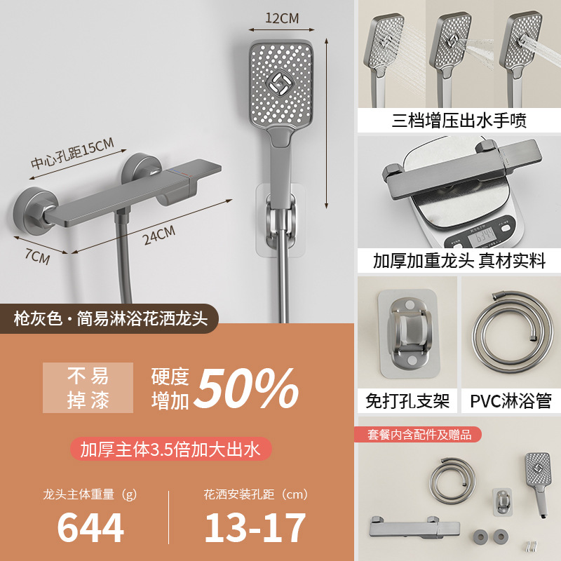 • Shuidu 그레이 [두꺼운 구리 본체] 사각 핸드 스프레이 샤워 세트