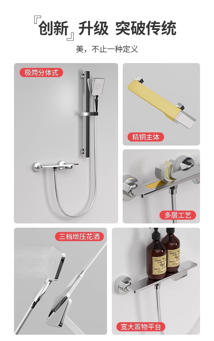 가정용 욕실을 위한 간단한 샤워 헤드 세트 미니멀리스트 토플리스 샤워 레인 샤워 욕실 샤워 구리 샤워 헤드 세트스토어 가기