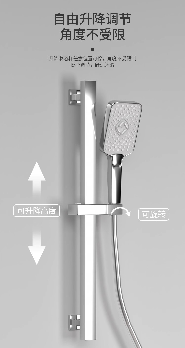 • 전기 도금된 은색 [두꺼운 구리 본체] 리프팅 로드 샤워 세트가 있는 3단 핸드 스프레이
