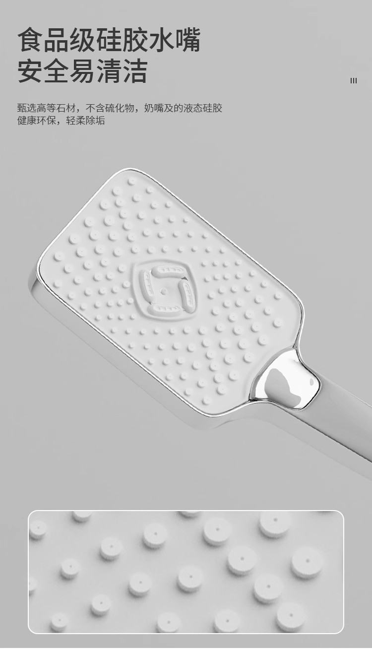 • 전기도금 실버 [두꺼운 구리 몸체] 사각 핸드 스프레이 샤워 세트