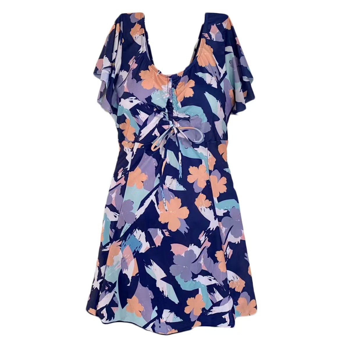 여성용 수영복 플러스 사이즈 중년 어머니 스타일 원피스 보수적이고 세련된 프린트 배 커버 슬리밍 수영복 뚱뚱한 소녀 도매